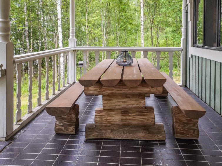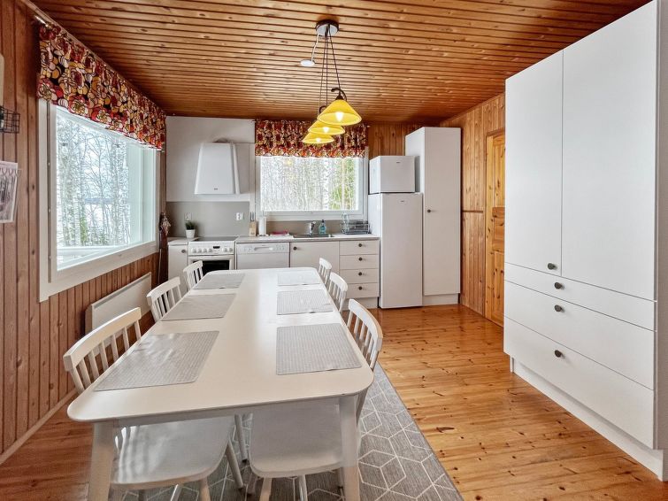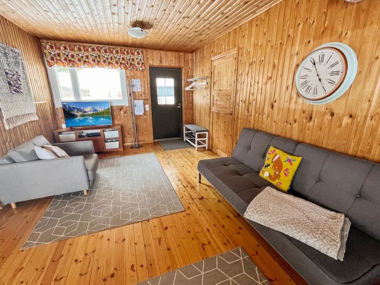Wooden cottage 1989, living room/kitchen with 2 convertible sofas , 3 bedrooms (one with double bed, one with 2 beds and one with bunk bed). Sauna with electric sauna stove and bathroom. Terrace. Air source heat pump.