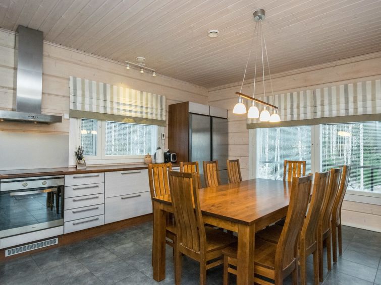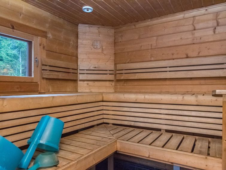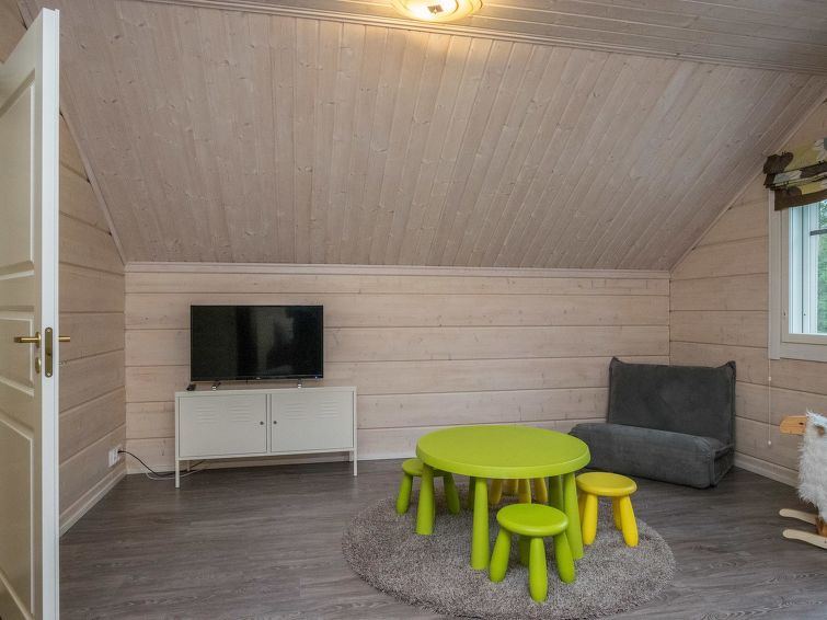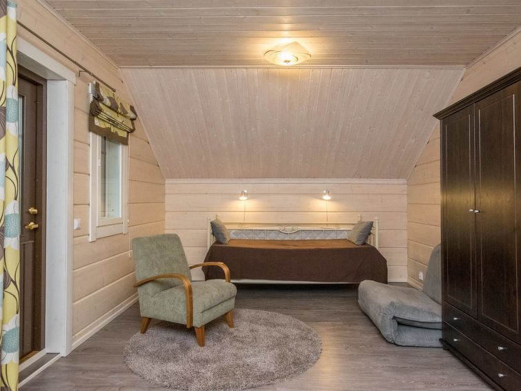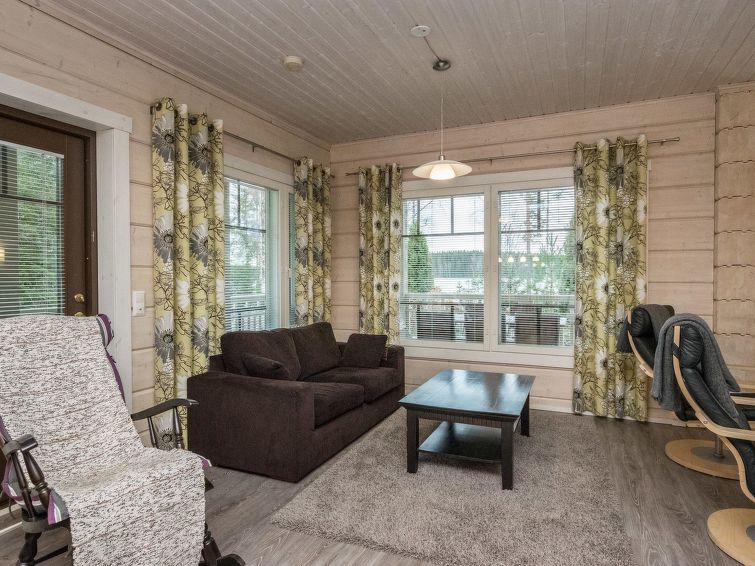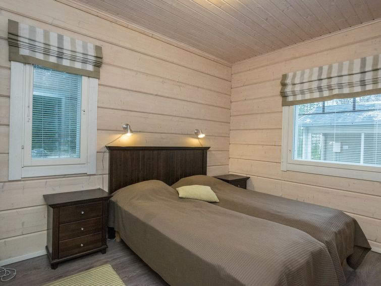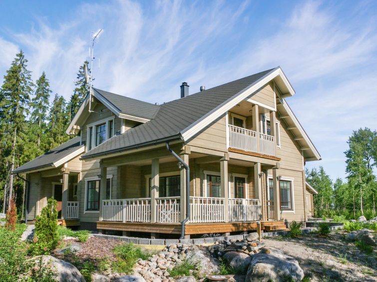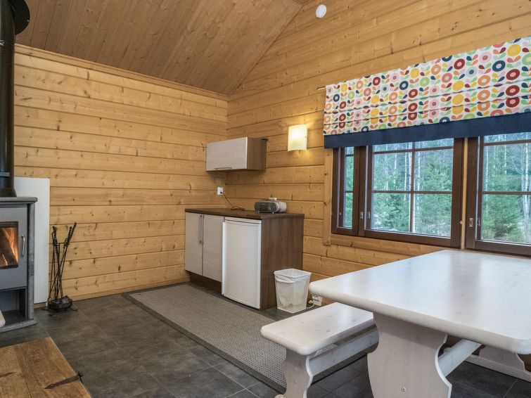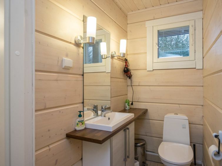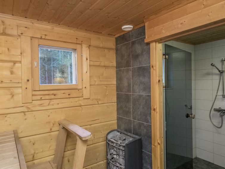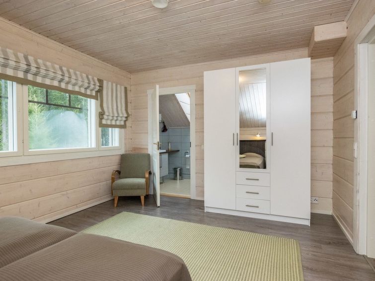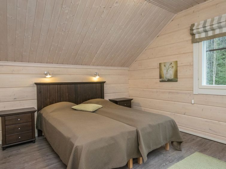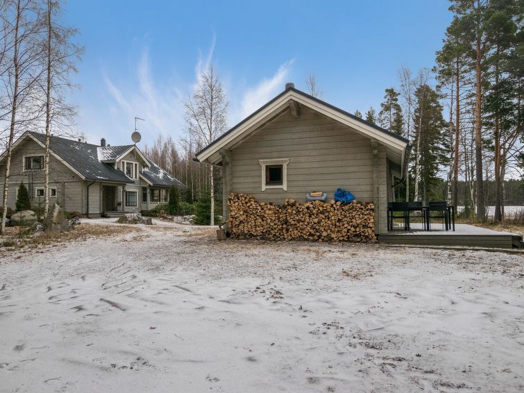 Log cabin 2010, kitchen, living room, bedroom (11 m²) two beds, utility room, washroom (2 showers) sauna, electric sauna stove, separate WC, terrace.