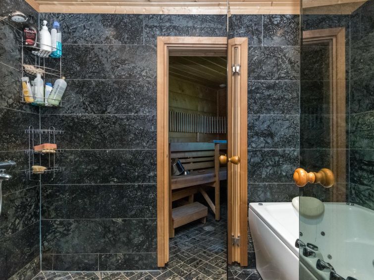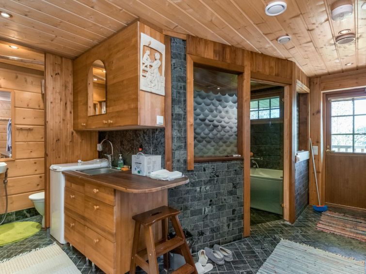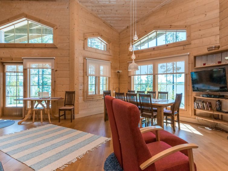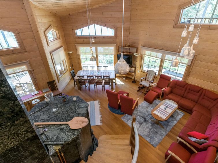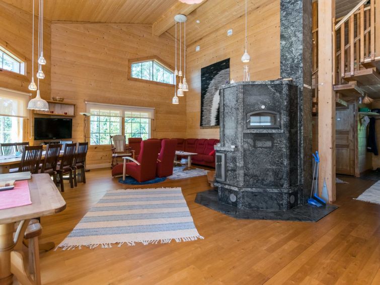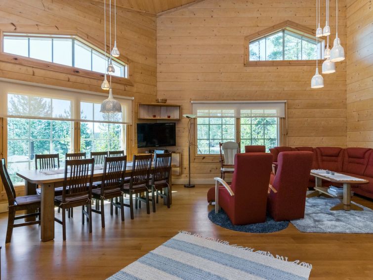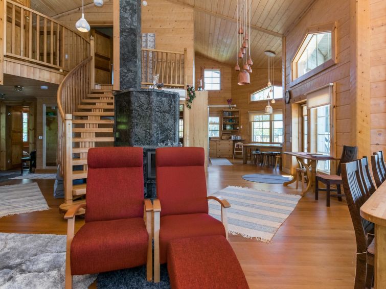 Rotating log house 2014, on the ground floor living room, kitchen, bedroom with double bed, bedroom 2 beds, sauna, washroom with shower and hot tub, dressing room/utility room, lounge, terrace (100 m²).