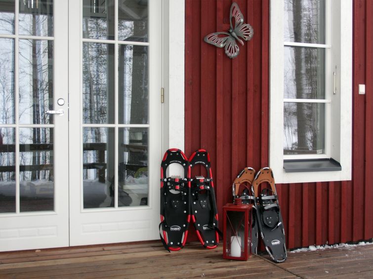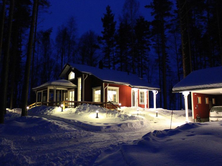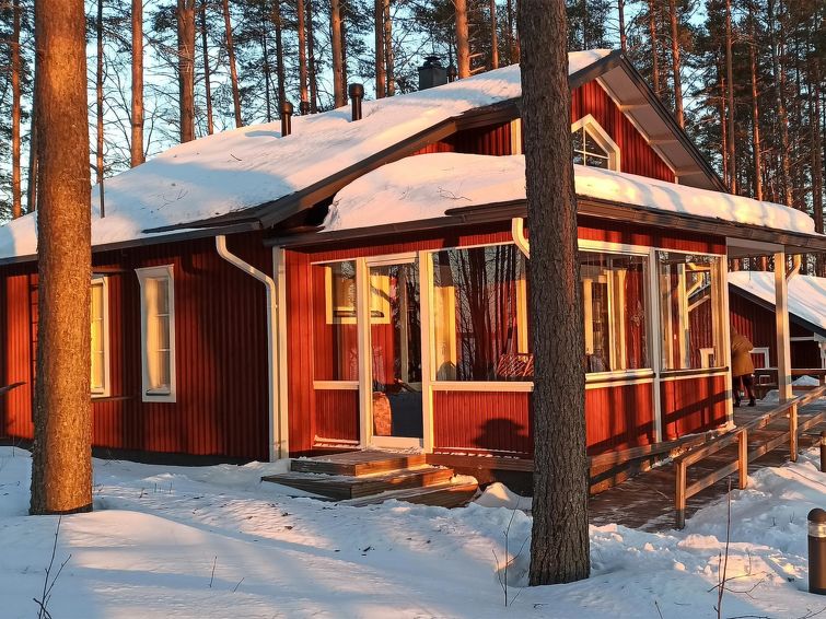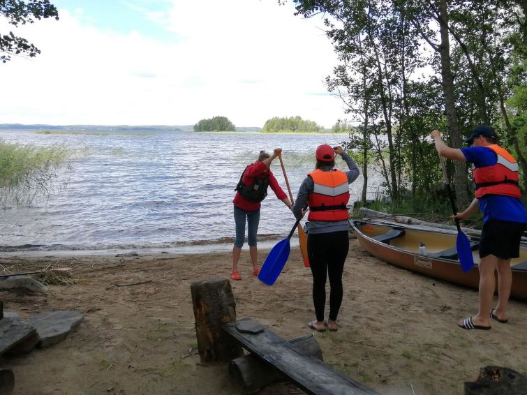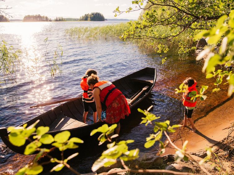 60 km SW of Joensuu, Orivesi / Saimaa 35 m (536 km ²). Rääkkylä 20 km. Own shoreline 500 m on a peninsula of Suursaari. There is a shallow sandy bay very suitable for children. Own rowing boat and jetty. A modern cottage was built in 2011. In the cottage you will find kitchen, living room, two bedrooms and loft, vestibule, sauna, shower room and toilet and a separate toilet, a covered veranda and a large terrace with an electric grill. For children, a baby bed and a high chair. Carport, heater plugs and storage. The cottage locates in the peace of the beautiful island of North Saimaa. Road to the cottage. No neighbors in sight. Cottage is very suitable for families with children, couples, and meetings and it is obstacle-free. Fire place on the beach. The cottage locates close to the nature reserve, where runs its own 2.8 km long nature trail with lean-tos (800 m). From the cottage leaves the water hiking trail. Good opportunities for fishing - there is a place for fish processing, vacuum packer and a separate freezer. Fishing guide service. Excellent for mushroom and berry pickers. Pajarinhovi aqua park and a wildlife park in Kitee 62 km. Elect. motor for the boat to be rented separately.
