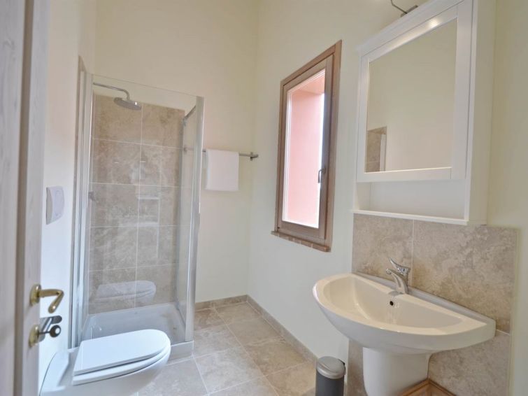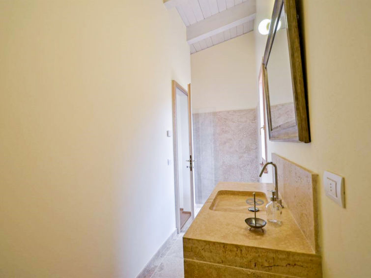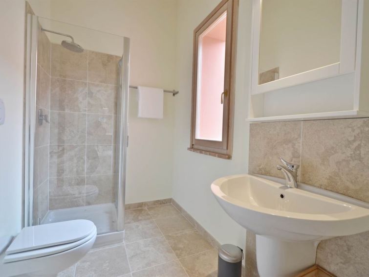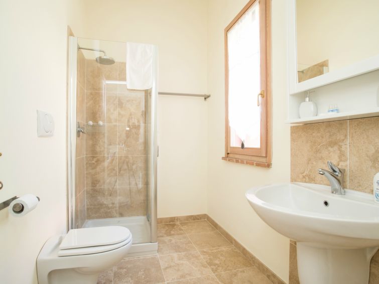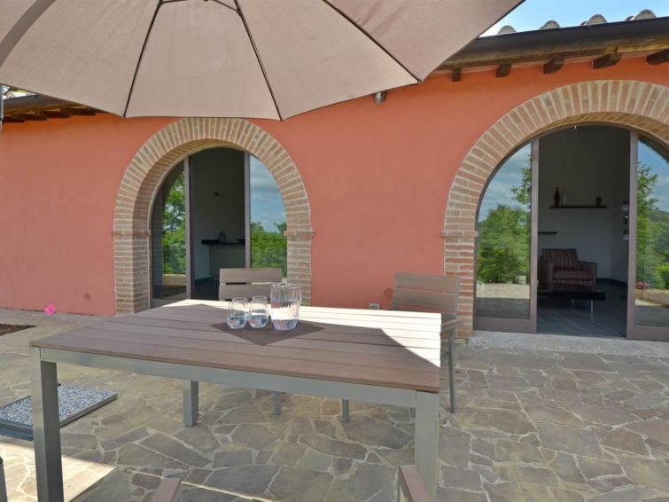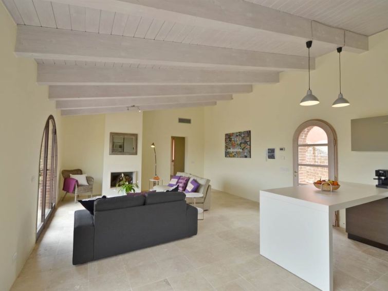 "Villa Rosmarino", 3 rom halvpart av tomannsbolig 93 m2, på bakkeplan. Romlig og lys, meget komfortabelt og stilfullt møbler: stor stue med, åpen peis, satelit-TV og internasjonale TVkanaler (flatskjerms TV), DVD. Utgang til hagen, til terrassen. 1 dobblet rom med, dusj/bidèt/WC. 1 rom med 2 senger. Åpent kjøkken (stekeovn, oppvaskmaskin, 4 gassbrennere, brødrister, vannkoker, mikrobølgeovn, elektrisk kaffemaskin) med bar. Utgang til hagen, til terrassen. Dusj/bidé/WC. Airconditioning, varmekabler i gulvet. Naturstengulv. Behagelig møblering i landlig stil. Terrasse, sitteplass i hagen. Terrassemøbler, liggestoler. Meget vakker panoramautsikt av landskapet. Fasiliteter: vaskemaskin, tørketrommel, strykejern, myggnett, høy barnestol for barn opp til 2 år, hårføner. Internett (trådløs LAN [WLAN], gratis). Parkeringsplass (2 Biler) ved hbrukt. Vennligst merk: velegnet for familier. Røykfri bolig. Kjæledyr / hund tillatt 1 kjæledyr / hund tillatt. Egen inngang. Ingen obligatoriske ekstrakostnader skal betales på stedet bortsett fra lokal skatt. Sengetøy, håndklær, sluttrengjøring og strøm er inkludert.