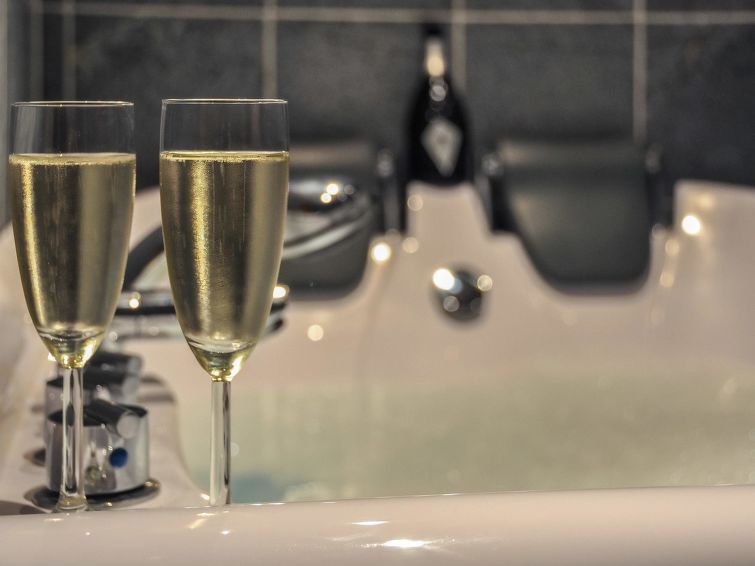 Additional amenities: whirlpool tub for two, cooking hut, garage.