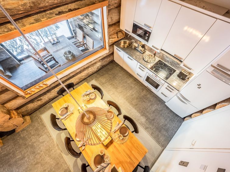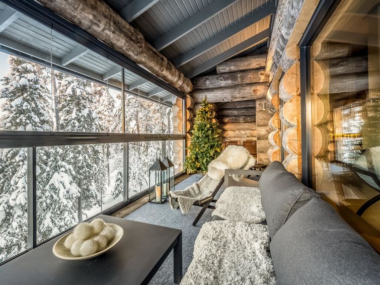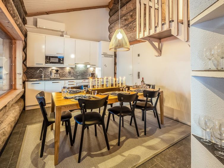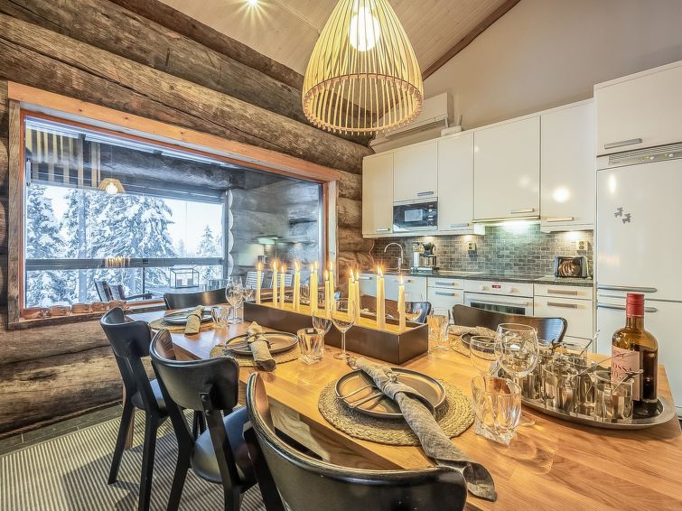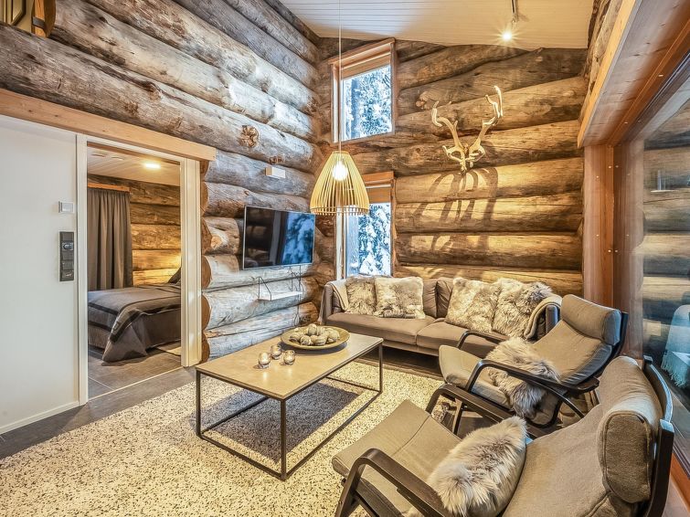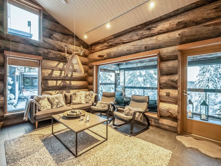 A-side of a kelo log-built semi-detached house, built in 2010. Located in a cozy holiday cabin area between the ski resort Rukatunturi and Finnish national road 5. The nearest ski lift - Kelo, the nearest restaurant - Royal Ruka.