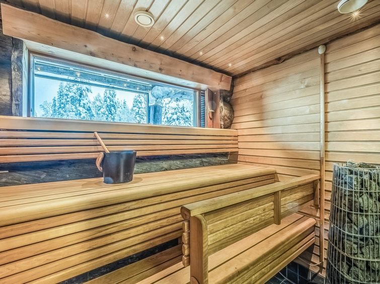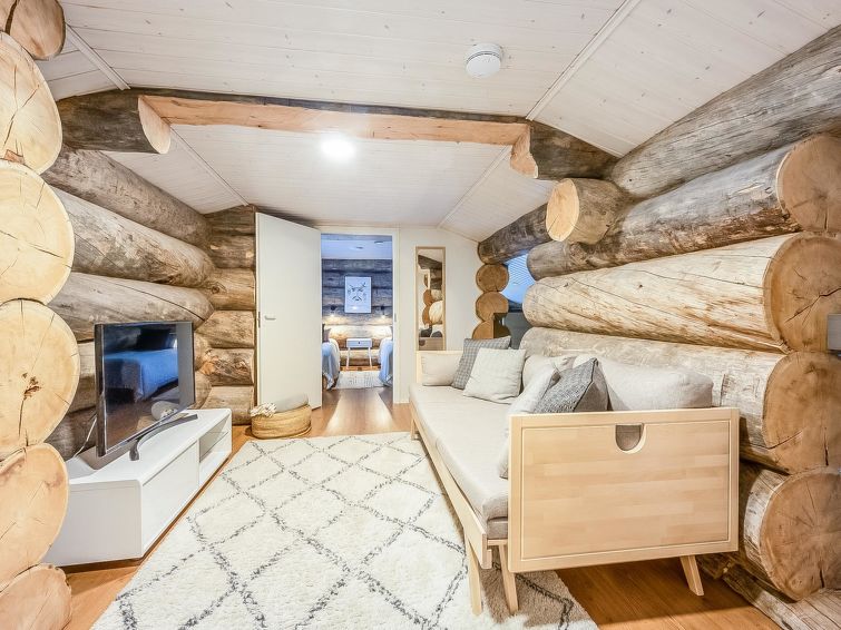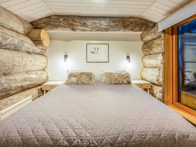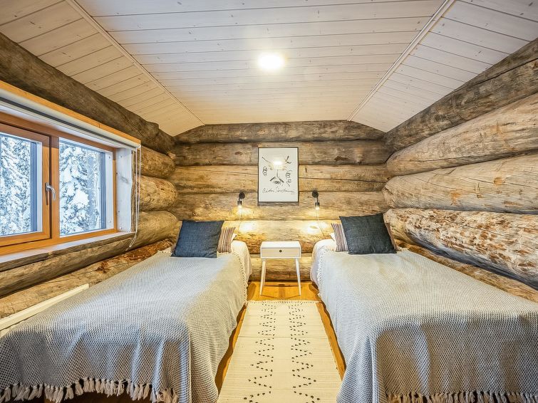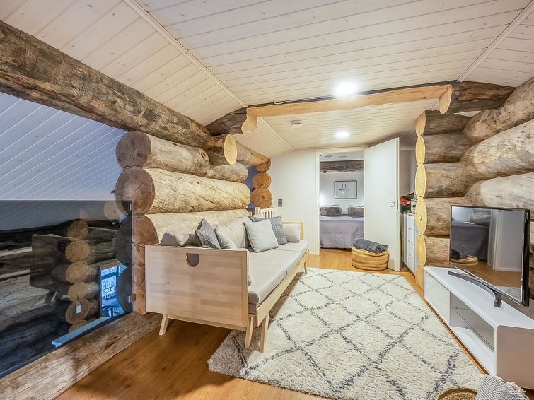 Bedroom 1 (ground floor): double bed, bedroom 2 (upper floor): 2 beds, bedroom 3 (upstairs): double bed, upstairs lobby: spreadable sofa bed for two. Living room/kitchen, electric sauna, dressing room.