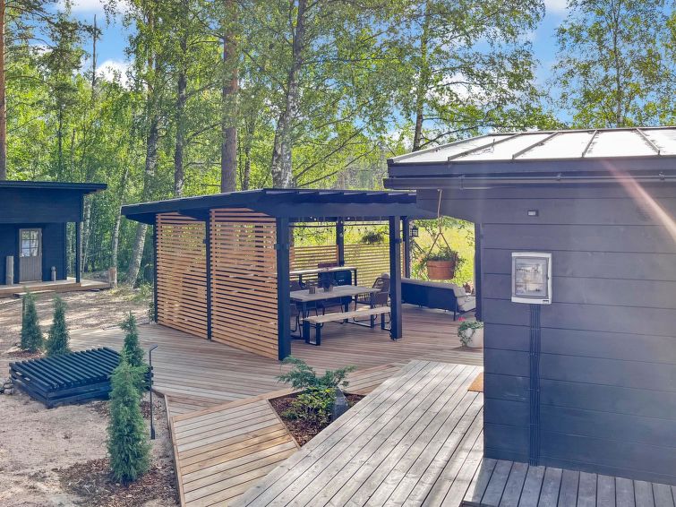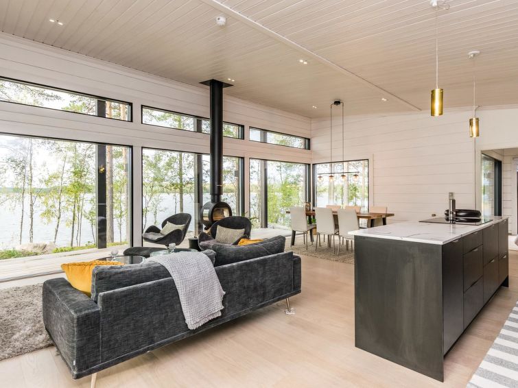 Villa Saimaan Joutsenlahti is a modern villa for a high-quality holiday. This rental villa is an ideal choice for families or couples. The large windows of the house have a wonderful view of lake Saimaa.