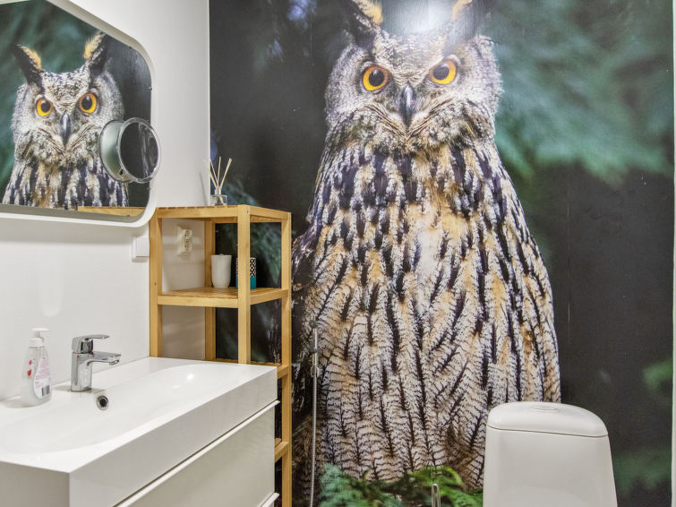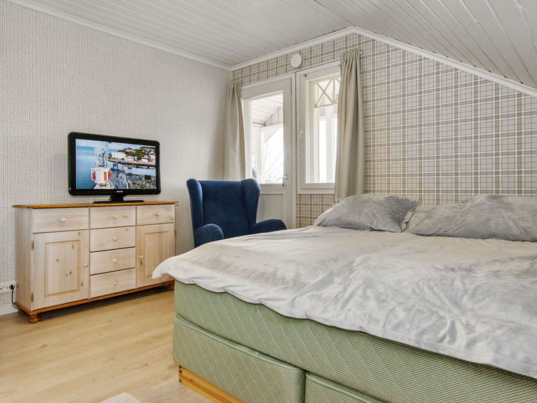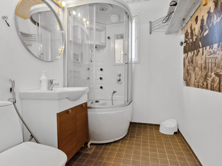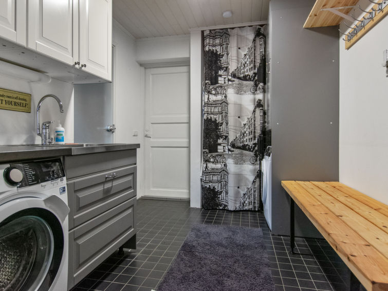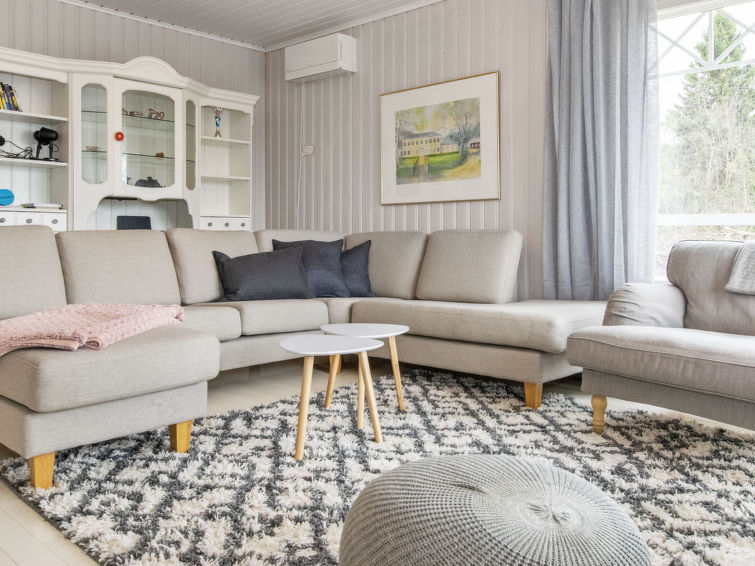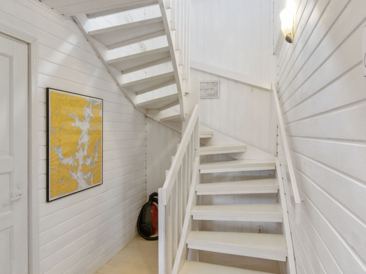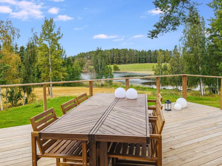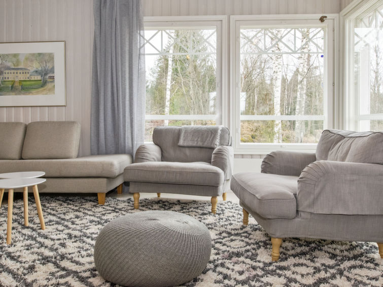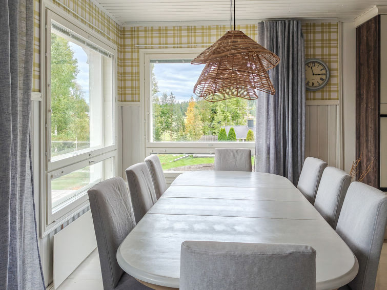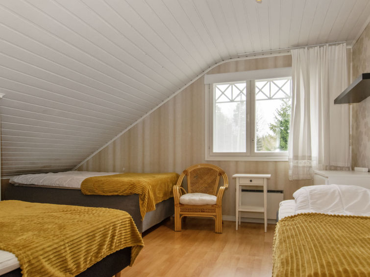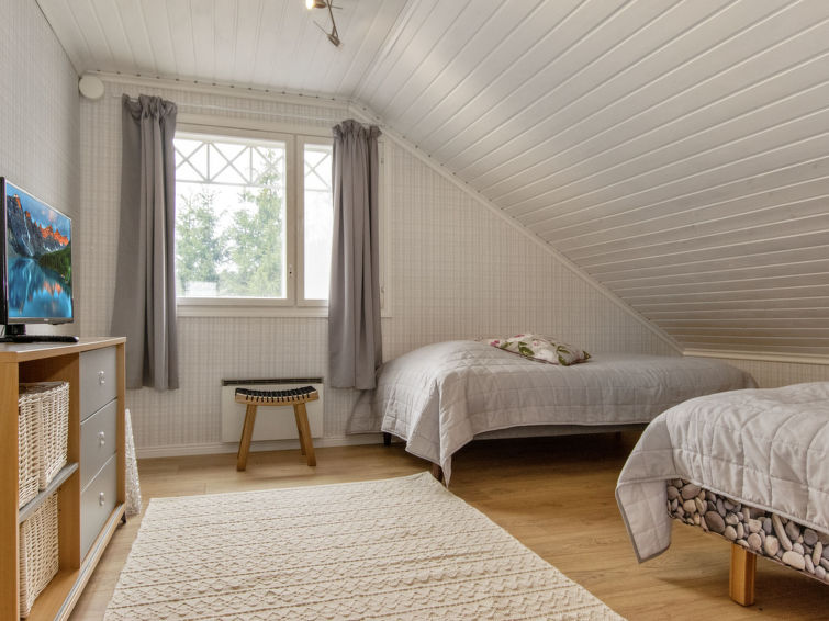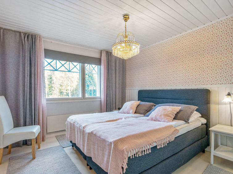Spacious 220 m² wooden villa (built in 1995). Five bedrooms with 11 beds, all beds are normal beds. Spacious kitchen and dining area, fireplace in the living room, two WCs, instant-ready electric sauna stove in the sauna, laundry room, washing machine, and tumble dryer in the utility room. A spacious yard into which the sun can shine all day. Gently sloping lawn plot descends to the shore. The plot is surrounded by a beautiful traditional rural field landscape.