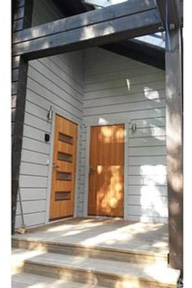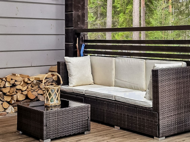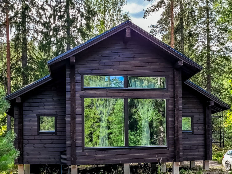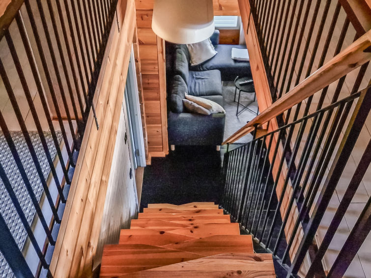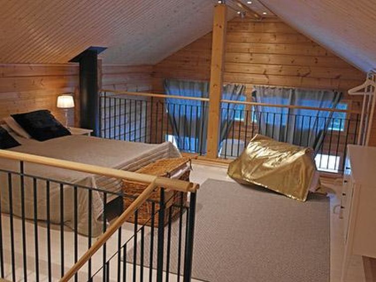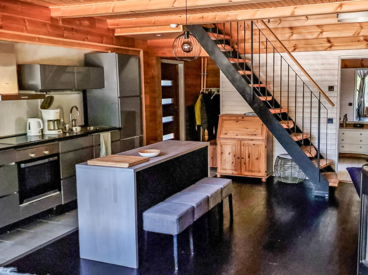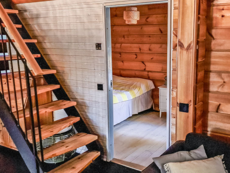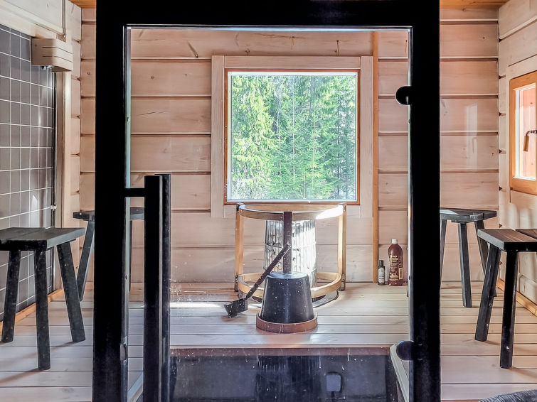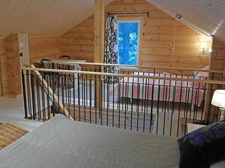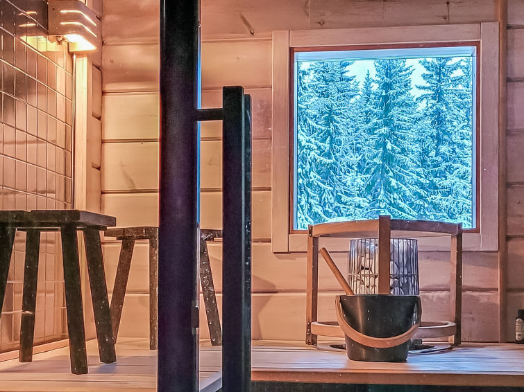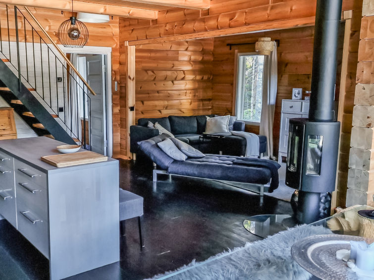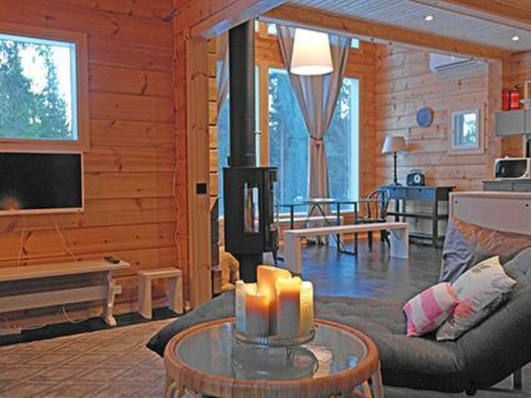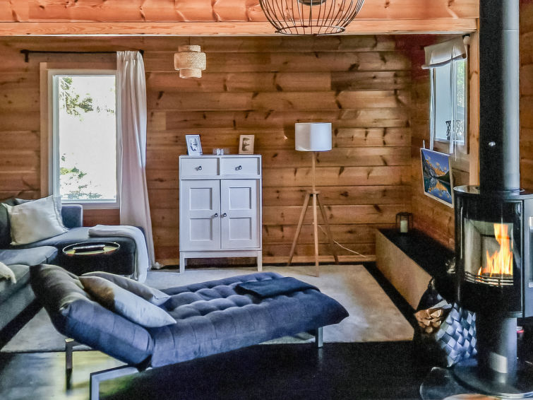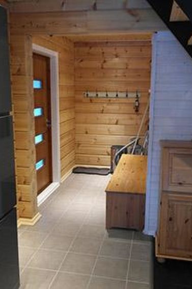 Log chalet 2014, downstairs modern living room-kitchen, bedroom with bunk bed, shower room / utility room, modern sauna (electric stove), small terrace.