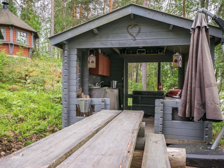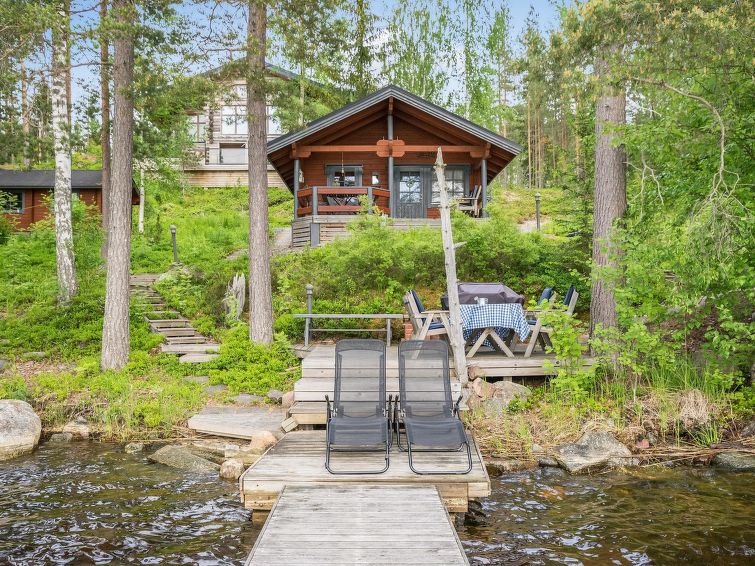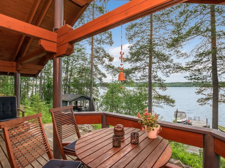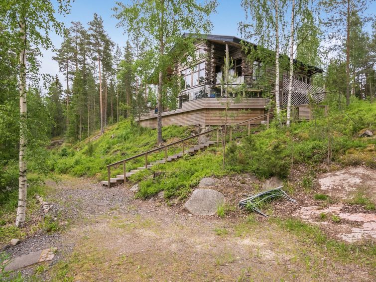 NOTE! Only for 8 persons! Not for teenagers. Villa Sieponpesä is located on a natural hillside plot, long stairs lead to the beach. The lakeside sauna can also be reached by car.