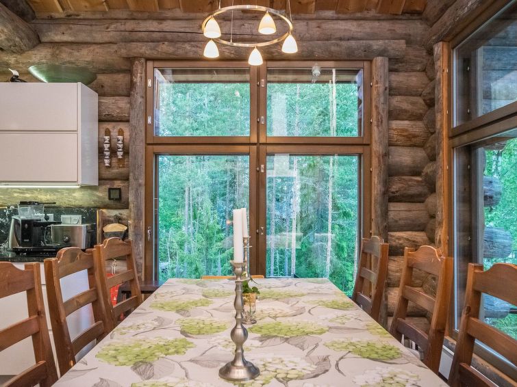 Villa Sieponpesä is a high-quality kelo log villa for a comfortable holiday. Villa is located on a hillside and the terrace offers great views over a lake Ala-Rääveli.