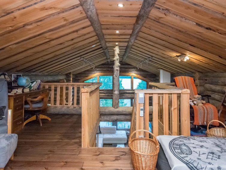 In the loft (about 20 m²) 120 cm bed and work desk. Air source heat pumps for heating and cooling in the loft and on the ground floor.