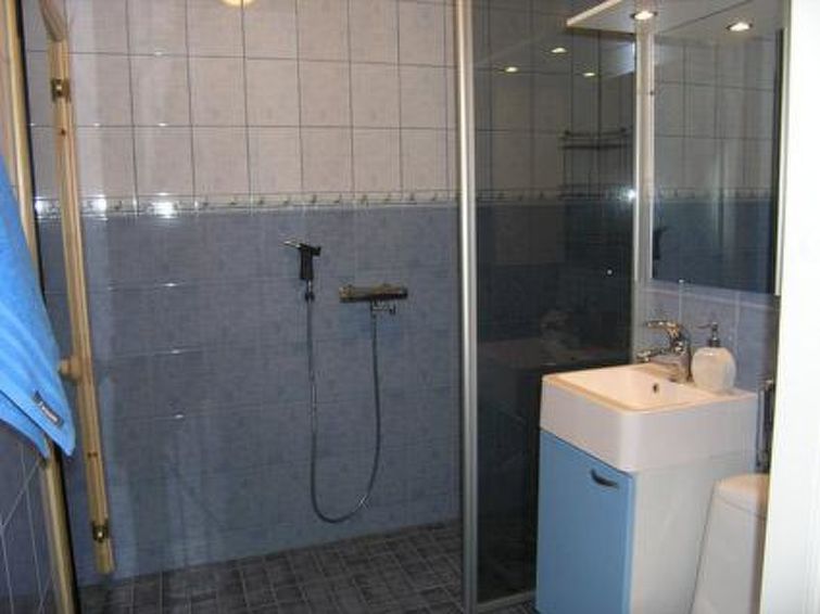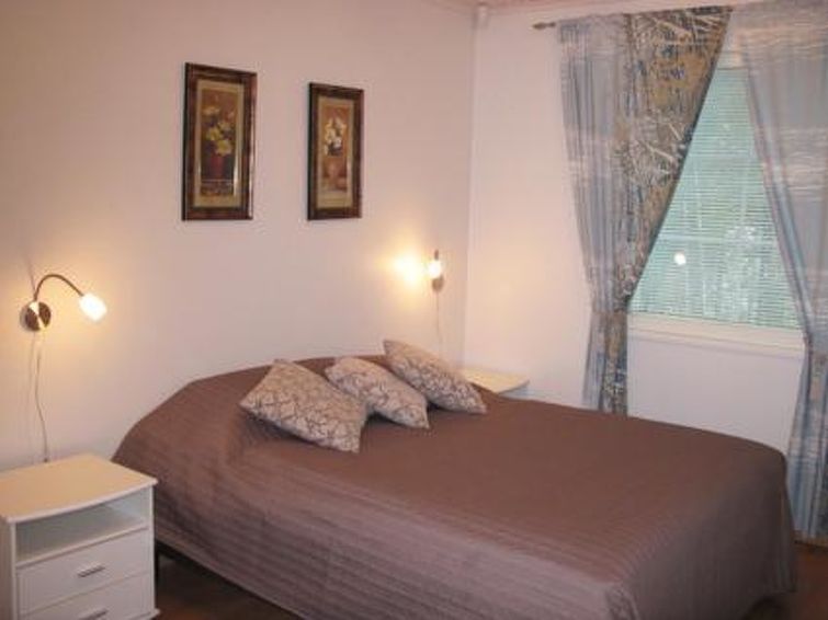 30 km north-west of Pieksämäki, L. Mehtiö 35 m (length 4 km, width 700 m) hard, shallow, sand bottom, own boat. Wooden chalet 2010, living room/kitchen convertible sofa/double bed, bedroom 2 beds, bedroom 2 beds, sauna, utility/dressing room, washroom, 2 terraces and patio. Car port, storeroom. Stylish, high standard chalet, includes a lot of technology. Mechanical ventilation, central vacuum cleaning system, satellite TV and Russian channels, 3 TV sets, home theatre. Geothermal heating. Electric fire alarms, burglar alarm. Automatic shower, sauna section has radio. Baby chair and baby feeding chair. Internet connection (wireless, speed 21 MB).