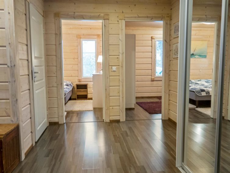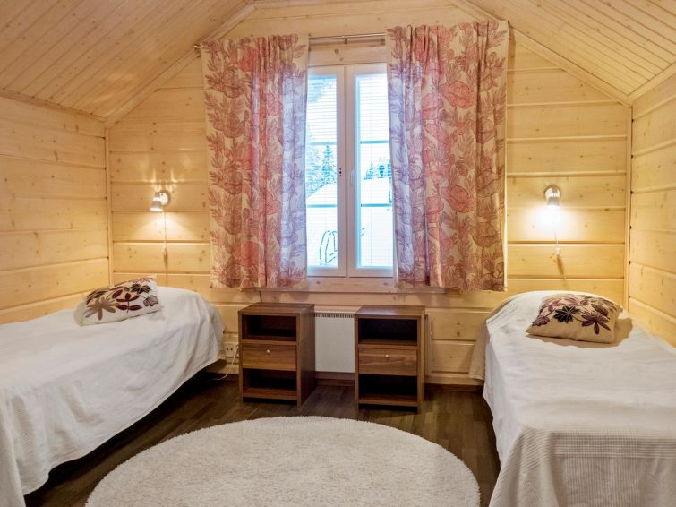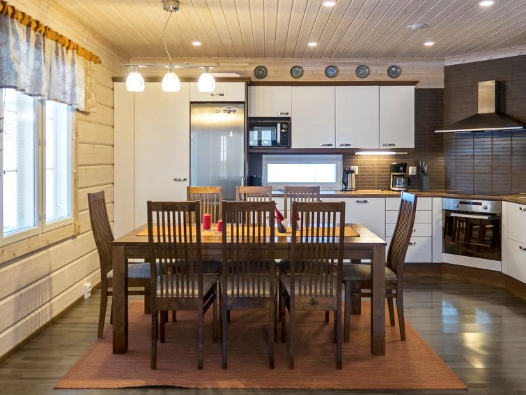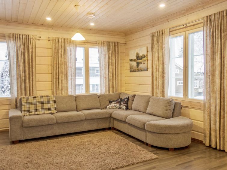 This separate luxury holiday villa was completed in 2011. Located in silent place in Vuokatti, near by the ski tracks and hiking routes. Villa Sofia is 2-storey villa, living area 140m². There is wide combined living room & kitchen, fire place, two bedrooms on 1st floor: both with beds for two. Utility room, sauna (electric heating), washroom/toilet and separate toilet. On 2nd floor there is a two bedrooms with beds for two. Shower and toilet alson on the 2nd floor. Terrace.