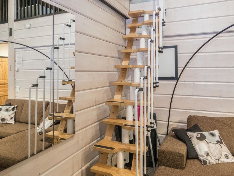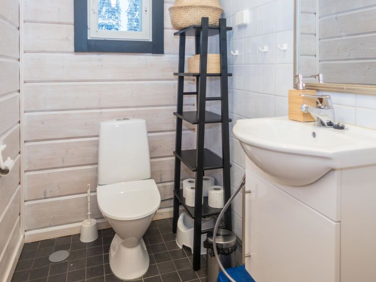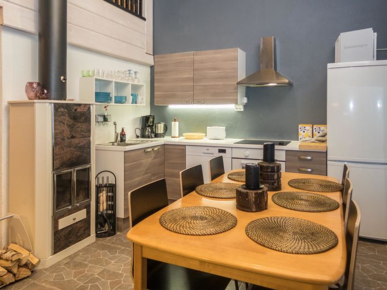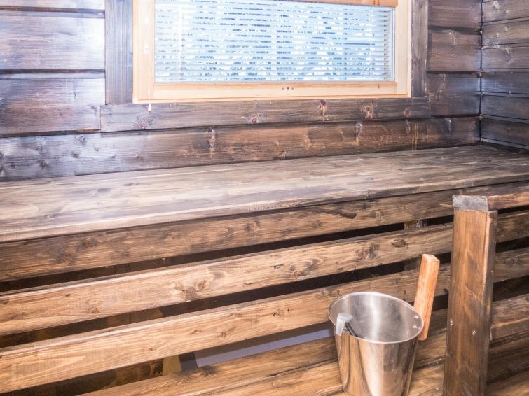 Log semi-detached house, built in 2014. Bedroom: double bed, loft: 2 beds + 2 mattresses, steep stairs to the loft. Living area, living room/kitchen, electric sauna.