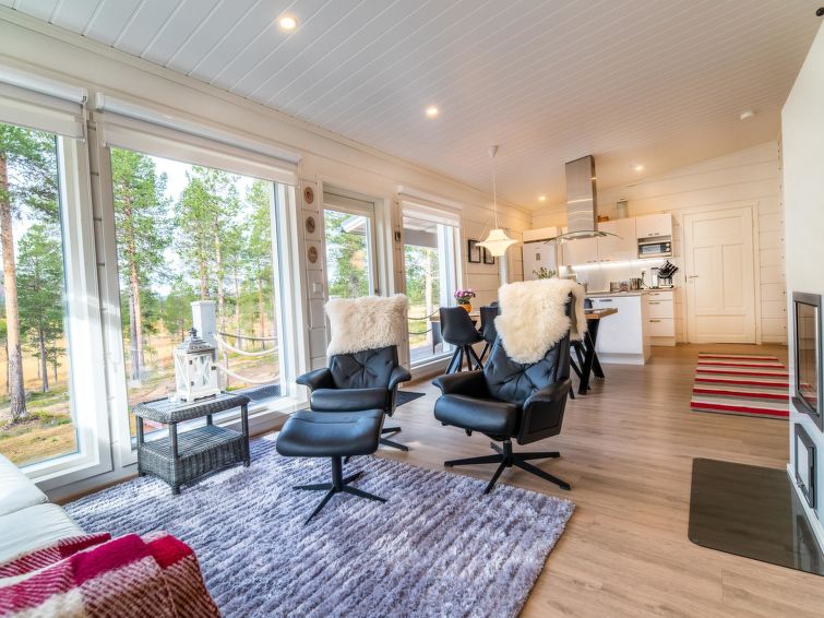 Villa Taiga is a high-quality holiday villa in the middle of magnificent mountain landscape in Pallas. Mountain views from the villa's windows. Ski trail is located near (50 m) the villa. Distance to the Vuontisjärvi beach is 250 m, rowing boat available (no own private beach).