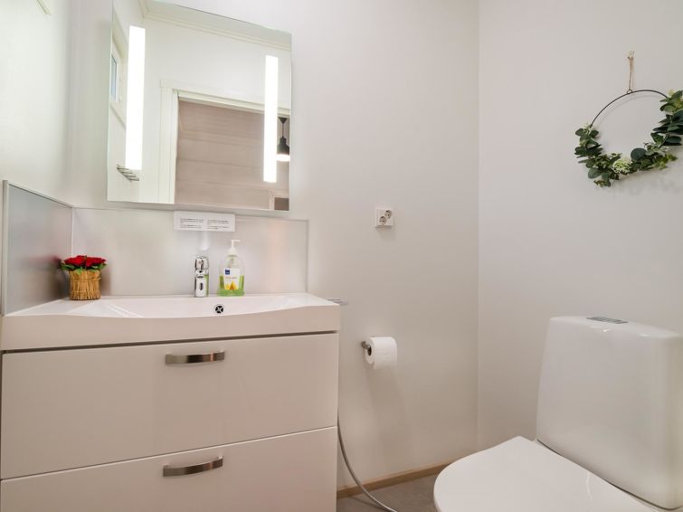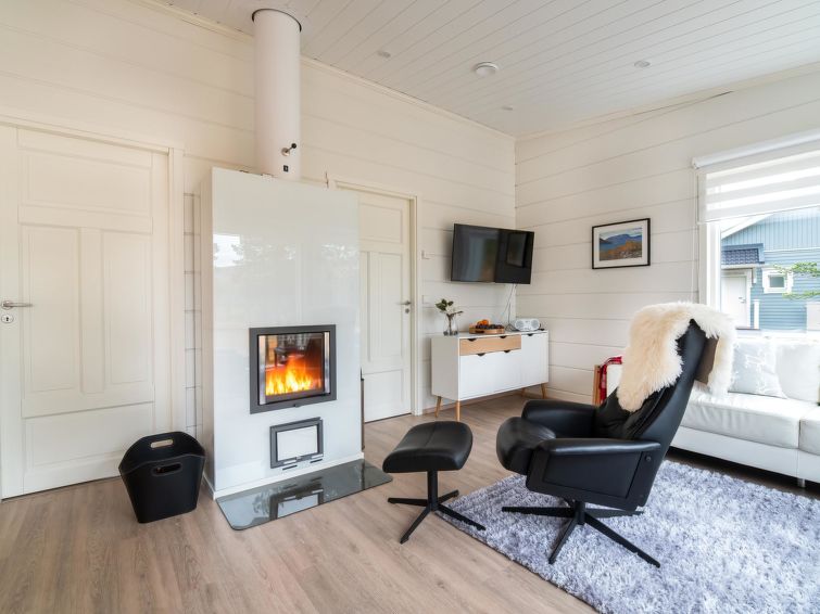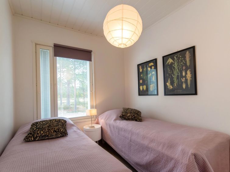 Log paneled cabin, built in 2019. Living room/kitchen, double bed in the bedroom, two other bedrooms with two single beds, sauna, washroom/WC, utility room, separate WC and partially covered terrace.