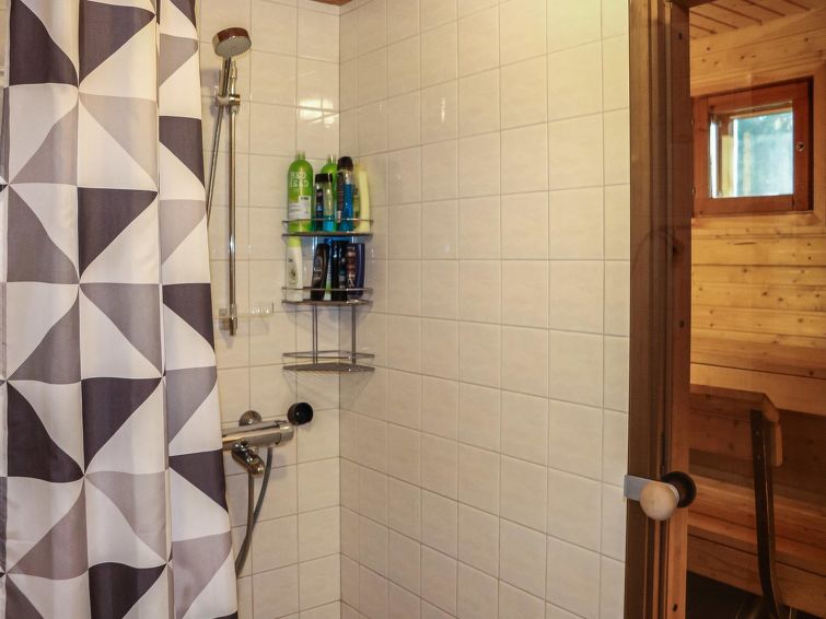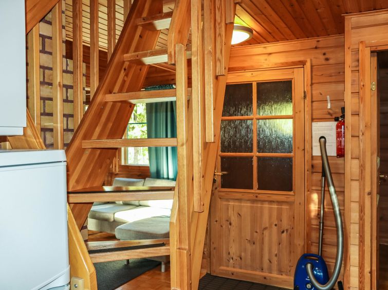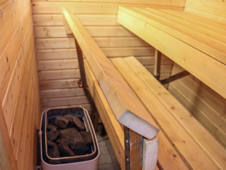 Snowshoes, children's snowmobiles, mountain bikes and canoes for rent in the holiday village. On the ground floor one bedroom with double bed, the rest of the beds are in the loft. The apartment is located in a semi-detached house. The house is built in 90’s and recently extensively renovated (e.g. kitchen, surfaces and part of the furnishing). The saunas were renovated in 2019. Lockable storage space for skis and a shared gas grill in connection with the semi-detached house. For additional fee glass roofed hut and wood-fired sauna. Reservations directly from the owner, whose contact details will be sent with the booking documents.