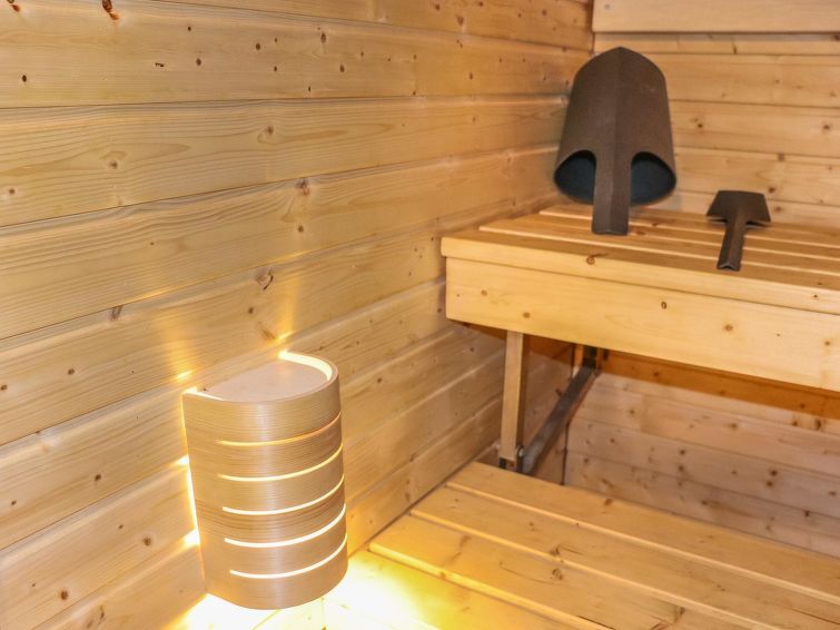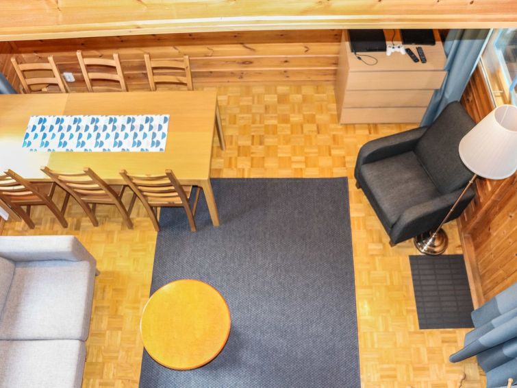 On the ground floor one bedroom with double bed, the rest of the beds are in the loft. Lockable storage space for skis and a shared gas grill in connection with the semi-detached house. For additional fee glass roofed hut and wood-fired sauna. Reservations directly from the owner, whose contact details will be sent with the booking documents.