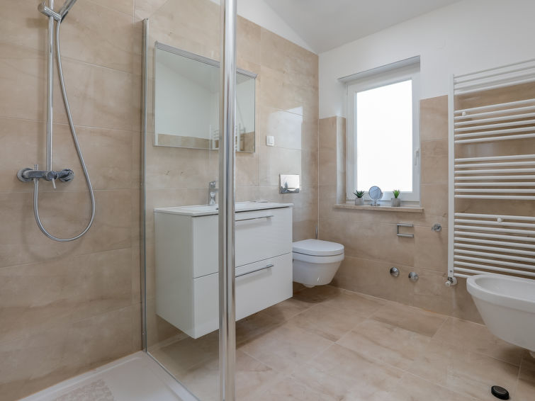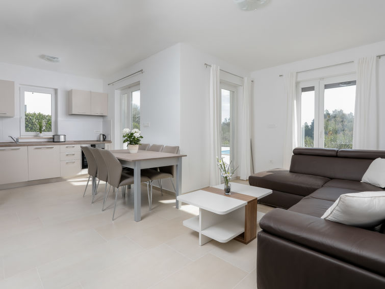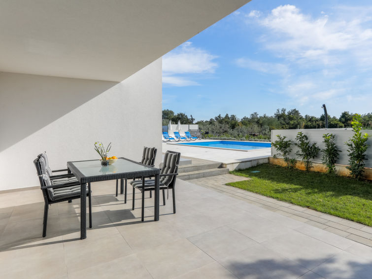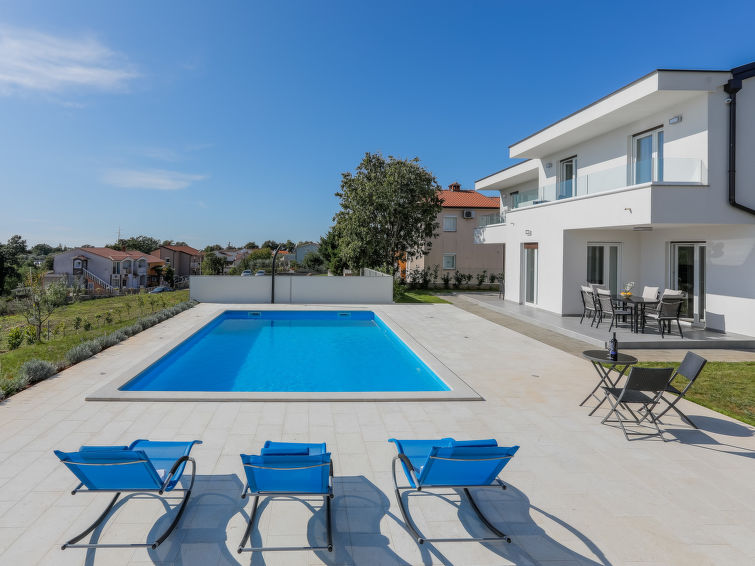 Nova Vas 6 km fra Poreč: Fin enmannsbolig "Villa Tonka", med 2 etasjer, bygget i 2019. 500 m fra sentrum av Nova Vas, i en solrikt posisjon, 5 km fra sjøen. Privat: tomt 1'100 m2 (inngjerdet), hage med plen, svømmebasseng kantete (10 x 4 m, dybde 150 cm, Sesongåpent: 01.Mai. - 15.Okt.) med innebygde trapper. Utendørs dusj, terrasse (15 m2), hagemøbler, grill. I huset: internetilkobbling, vaskemaskin. Parkering (for 2 biler) ved hbrukt på tomten. Supermarked 600 m, restaurant 1 km, småstenstrand 5 km, strand ved klipper 5 km, offentlig badeområde 5 km. Tennis 5 km, rideskole 7 km, turstier fra hbrukt 100 m, sykkelvei 150 m. Attraksjoner i nærheten: aquapark 10 km, amusement park 15 km. Vennligst merk: velegnet for barnefamilier. Eieren godtar ikke noen ungdomsgrupper. Det er ikke tillatt å organisere en fest. Enheten består av 2 hus som er leid som en enhet.