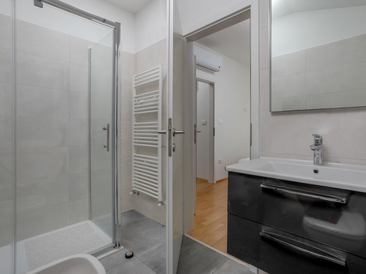 7 rom hus 250 m2 på 2 etasjer. Smakfullt møbler: stue/spisestue 30 m2 med, kjøkkenhjørne og satelit-TV (flatskjerms TV), air-conditioning. Utgang til terrassen. Stue/spisestue 35 m2 med, satelit-TV (flatskjerms TV), air-conditioning. Utgang til terrassen. Åpent kjøkken (stekeovn, oppvaskmaskin, 4 keramiske kokeplater, mikrobølgeovn, frys, elektrisk kaffemaskin). Dusj/WC, sep. WC. Oppvarmingsalternativ. øverste etasje: 2 rom, hvert rom med 2 senger (90 cm lengde 200 cm), satelit-TV (flatskjerms TV), air-conditioning. Utgang til terrassen. 2 rom, hvert rom med, 1 dobbeltseng (160 cm, lengde 200 cm), satelit-TV (flatskjerms TV), air-conditioning. Utgang til terrassen. 1 rom med, 1 dobbeltseng (160 cm, lengde 200 cm), dusj/bidèt/WC og satelit-TV (flatskjerms TV), air-conditioning. 2 dusjer/bidéer/WC. Terrasse 30 m2, dekt, 2 terrasser 8 m2, med tak. Terrassemøbler, liggestoler. Utsikt av svømmebassenget og landskapet. Fasiliteter: safe, strykejern, barneseng, hårføner. Internett (trådløs LAN [WLAN], gratis). Parkeringsplass (overdekt, 2 Biler). Et hus med stue/spisestue og åpen kjøkkenløsning i første etasje, 2 soverom i andre etasje. Det andre huset har stue/spisestue i første etasje og tre soverom i andre etasje.