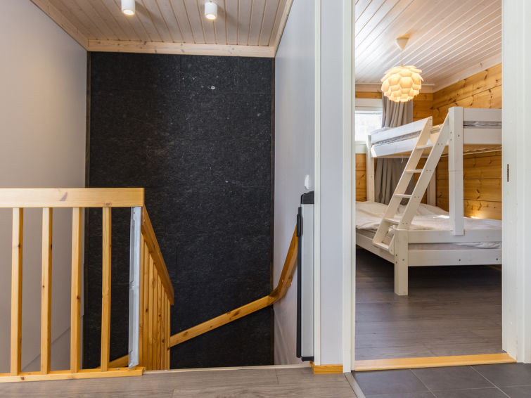 2-storey villa built of stone and log in 2014, in upstairs there are combined livingroom-kitchen, bedroom with double bed, bedroom with bunk bed (lower bed 120 cm, upper bed 80 cm) and bathroom with shower and toilet. In downstairs there are bedroom with 2 beds, livingroom, utility room, bathroom (2 showers), electric sauna and separate toilet.