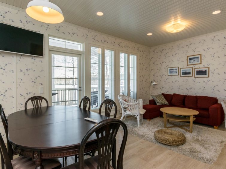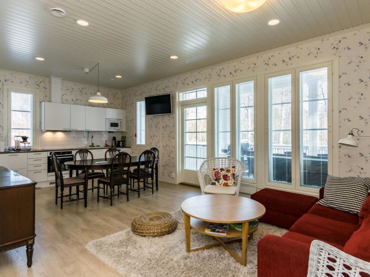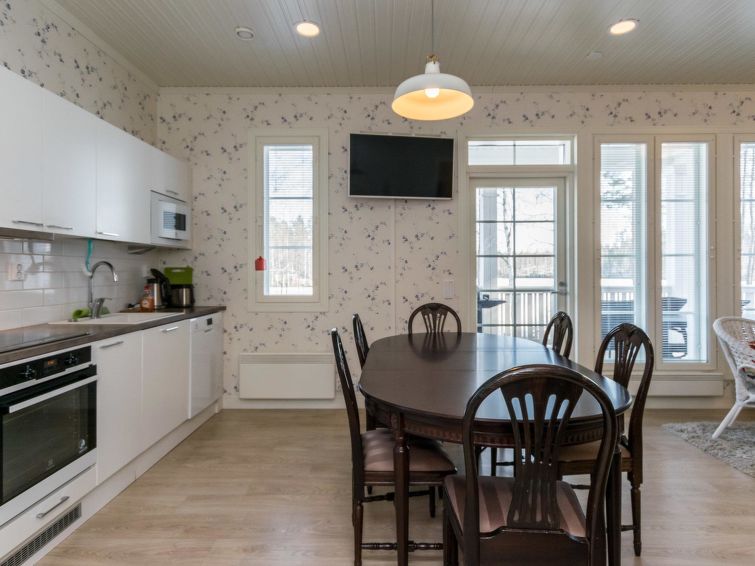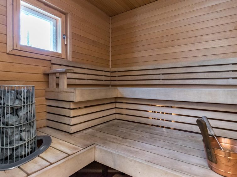 Wooden house 2014, kitchen-living room, 3 bed rooms with 2 beds in each, toilet, sauna (electric), shower room (2 showers and toilet), dressing room/utility room, lounge, terrace.