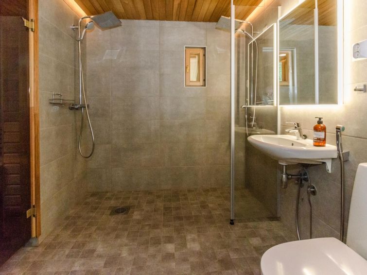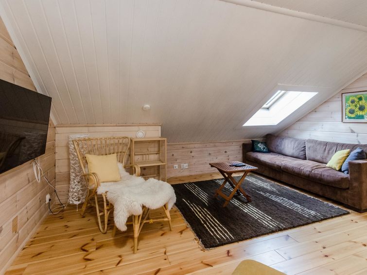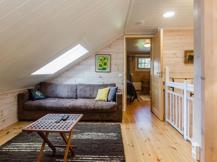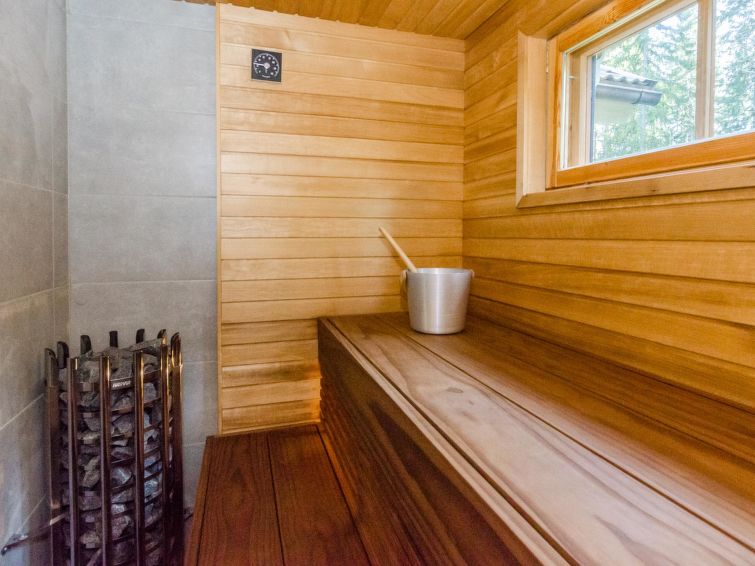 The cabin has an air-water heat pump, 100 Mbps fiber-optic Internet, and several Bluetooth speakers. You can listen to the radio in the sauna. There is an ice maker in connection with the freezer.
