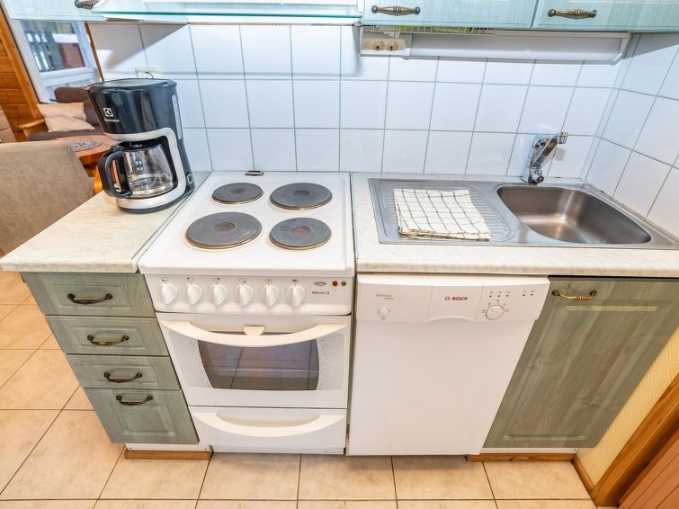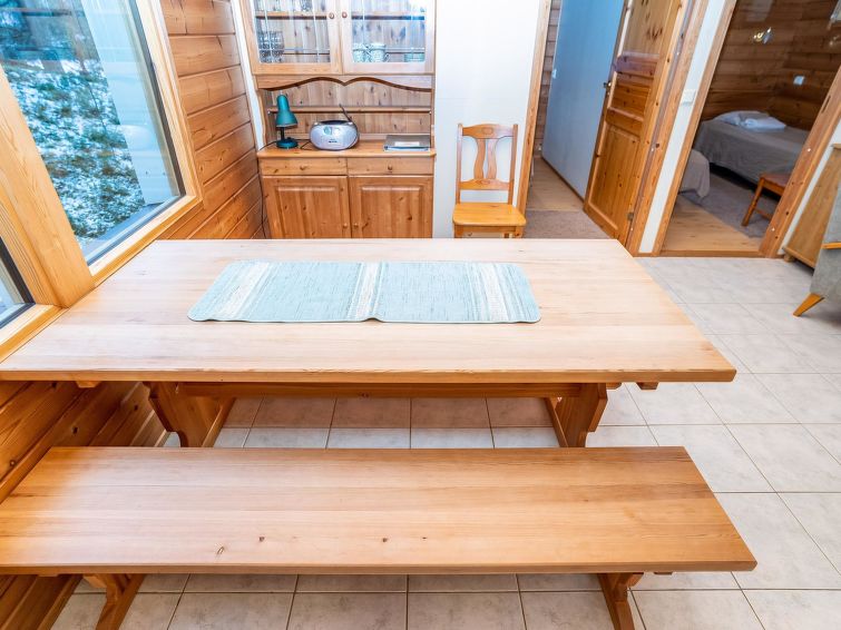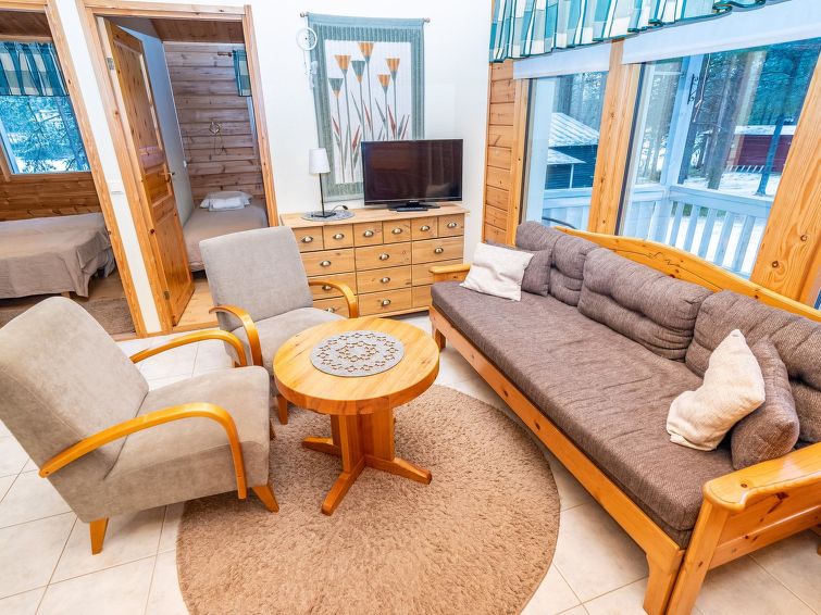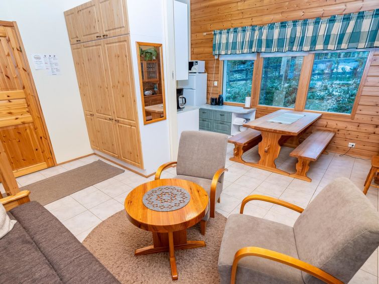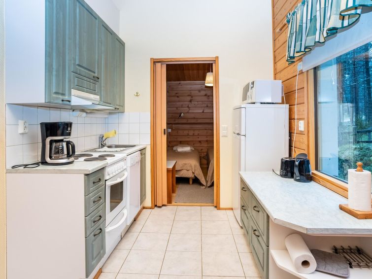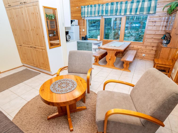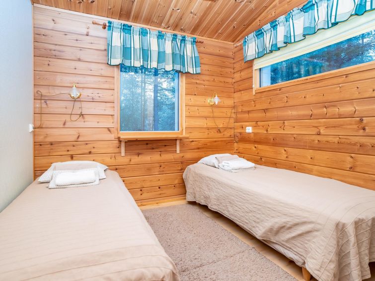 Log cottage, built in 2002, bedroom 1: 2 beds, bedroom 2: 2 beds, bedroom 3: 2 beds. Combined kitchen/ living room, electric sauna. Log cottage, situated by the pond Petäjälampi. Totally 6 cabins on the same yard. Cabins are located on the edge of the camping site (camping site open yearly during 1.6. - 30.9.). Spa Kuusamo Tropiikki / Kuusamo Golf 1.5 km by road (by walk 0.5 km). Excellent opportunities for hiking. Good fishing opportunities. Suitable for families, golf players and active people.