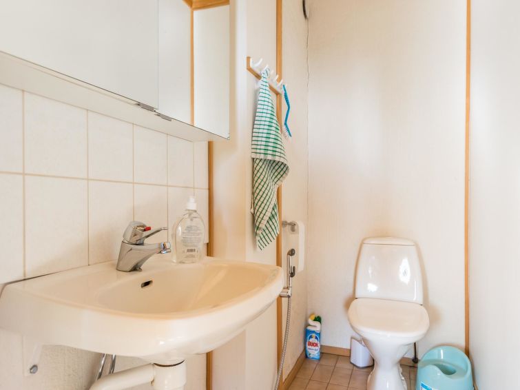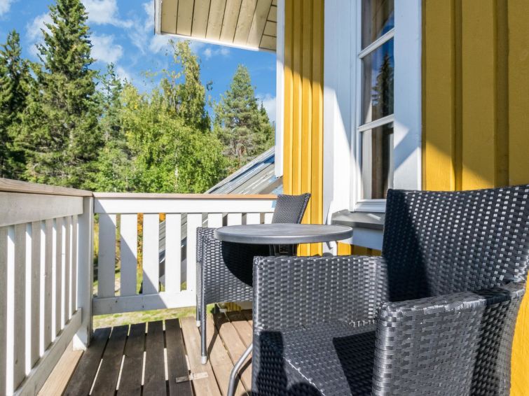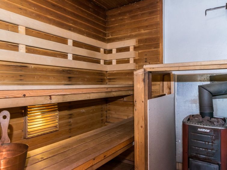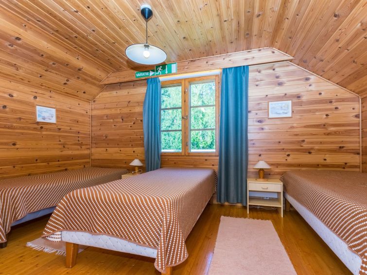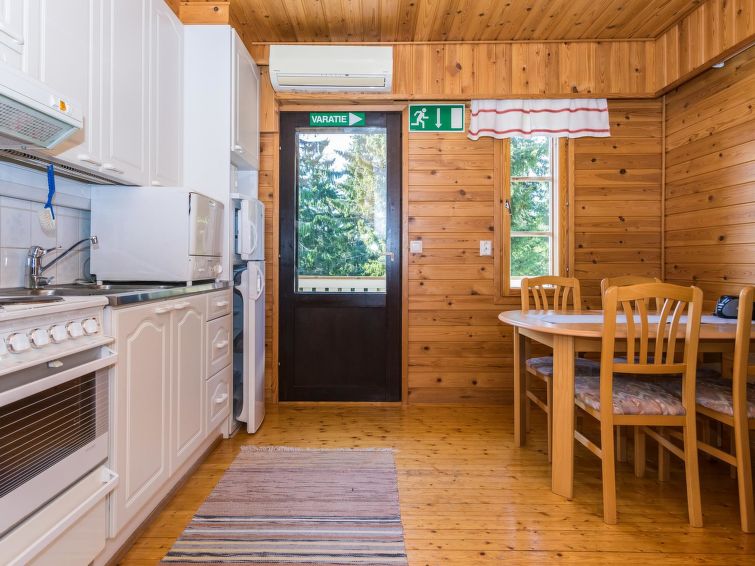 This three-floor log house located by the Vuokatti hill in village Ohravaara was completed in 1993. Floor area 60 m² and upstairs floor area 50 m². Downstairs is combined living room & kitchen, two bedrooms, the other with separate beds for two, the other witth separate beds for three. Toilet. Upstaris is two bedrooms, the other with separate beds for two, the other with separate beds for three. Small kitchen, toilet and terrace. Downstairs there is sauna (heated with wood) and washroom + toilet.