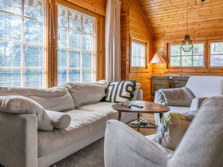 Golf course (Classic) 1.5 km (you can ask for tickets from the owner at a reasonable price), Holiday Club spa 1,1 km, beach 700 m, fitness track about 20 m (in the backyard of the cabin). The Flowpark climbing track and frisbee golf course are 1 km away, bowling 1.8 km. In the Vierumäki area there are many outdoor, skiing, cycling and orienteering routes, as well as an ice hall and a sports hall.