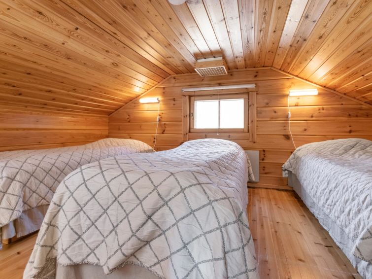 16 km to the south from Heinola, lake Suurijärvi 700 m, no own beach. Log cabin, living area, living room/kitchen, two bedrooms (bedroom 1: two beds, bedroom 2: double bed 140x200 cm), loft with three beds. Dressing room, sauna (electrically heated stove), washroom with WC, separate WC.