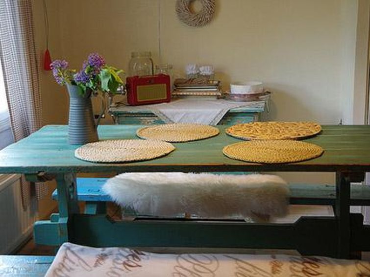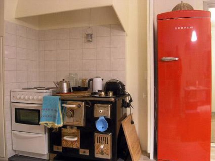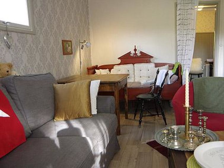 Boarded up log building 1920, kitchen, living room with sofa bed (160x200 cm), bedroom with double bed (140x200 cm), bedroom with 1 bed (80x200 cm) and 2 beds (á 80x180 cm), sauna, bathroom. Crib for a baby on request. Maximum amount of pets is 3.