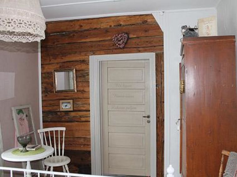 For summer use only a sleeping hut with electric light and beds for two. The place is a small farm style setting that includes a main building, a stone barn, log barn and many of the old wooden buildings. Idyllic, spacious yard with old bushes, Midsummer roses, berry bushes, a huge apple tree, as well as other old big trees. Peaceful location in a natural setting beside a high hill, which opens a wide field and forest landscape. Well water safe to drink, but when it rains the color may turn yellowish. Private road to the neighbour with little traffic passes beside the yard. WiFi available on request.