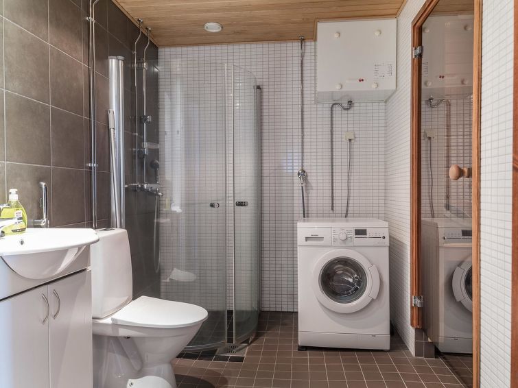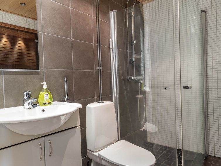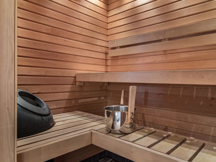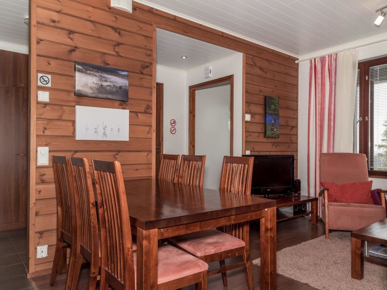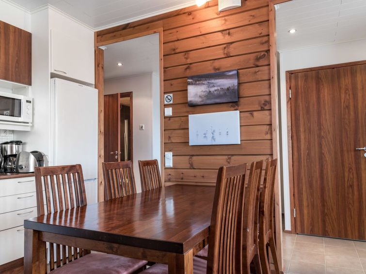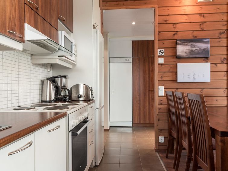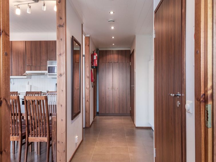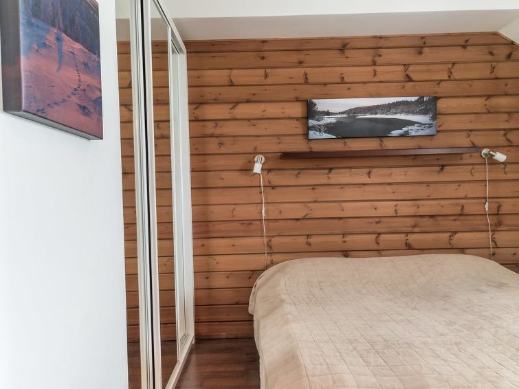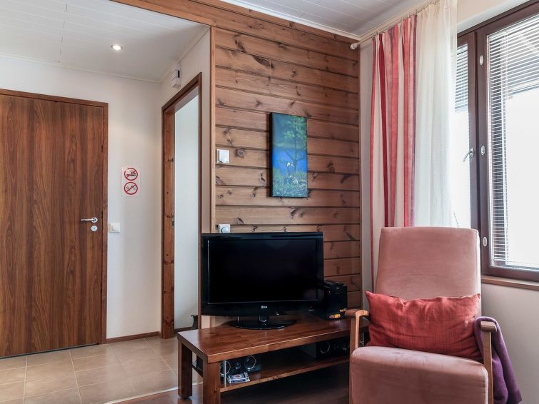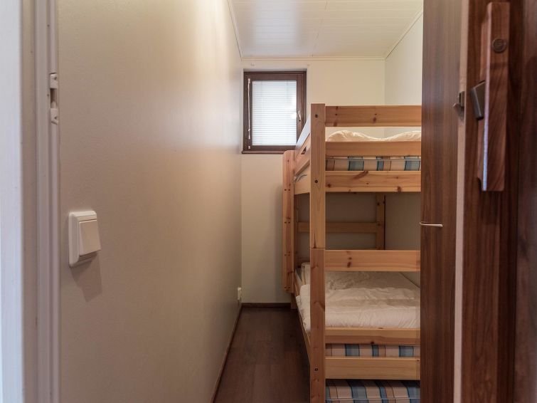 40 km north of Kolari, lake Ylläsjärvi 4 km, swimming beach 5,5 km. Apartment in an apartment hotel, downstairs, built 2008. Livingroom/kitchen with an extendable bed sofa, bedroom: double bed, sleeping alcove: bunk bed, electric sauna, washing room/toilet. Please notice that firewood is not included to the price. Villa Ylläs is a good quality apartment hotel located in Ylläsjärvi village on the side of the fell near Sport Resort Ylläs. Slopes, skiing tracks, hiking routes, restaurants and well-being services located within walking distance. Ski maintenance room located on the bottom floor of Villa Ylläs. No pets allowed.