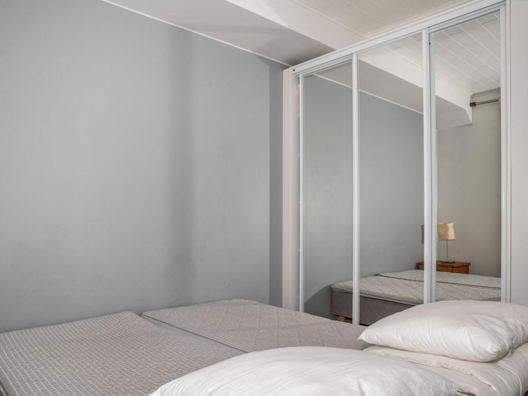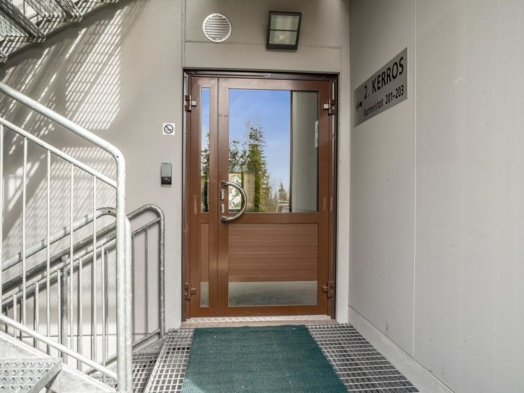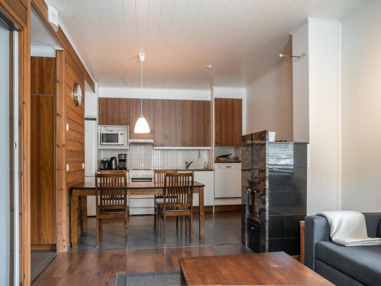 40 km north of Kolari, lake Ylläsjärvi 4 km, swimming beach 5,5 km. Apartment in an apartment hotel, built 2008. Livingroom/kitchen with an extendable bed sofa, one bedroom with two separate beds, one sleeping alcove with a bunk bed, electric sauna, washing room/toilet. Please note that firewood is not included to the price.