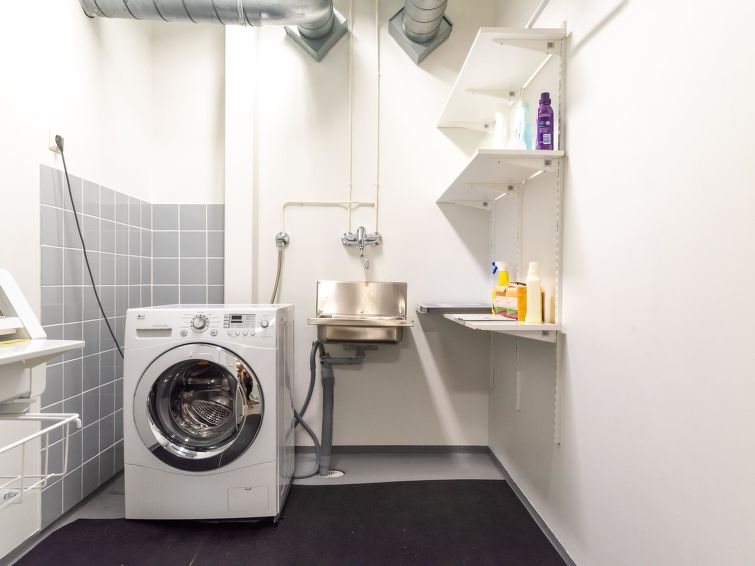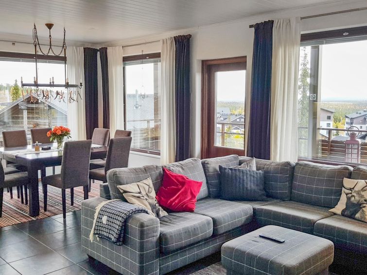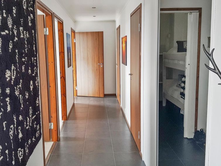 40 km north-east of Kolari, lake Ylläsjärvi 4 km, swimming beach 5,5 km. Appartment in a appartment hotel, built 2008. Livingroom/kitchen, 1 bedroom with a double bed (width 180 cm), 2 bedrooms each with two separate beds, sleeping alcove with bunk bed, electric sauna, washing room/toilet. Tumble dryer. Villa Ylläs is a good quality appartment hotel located in Ylläsjärvi village, on the slopes near Sport Resort Ylläs and it's services. Internet-connection (wireless, speed 5 Mb). Slopes, skiing tracks and hiking routes available right from the yard. Dining and well-being services are withing walking distance. Ski maintenance room downstairs of Villa Ylläs. No pets allowed.