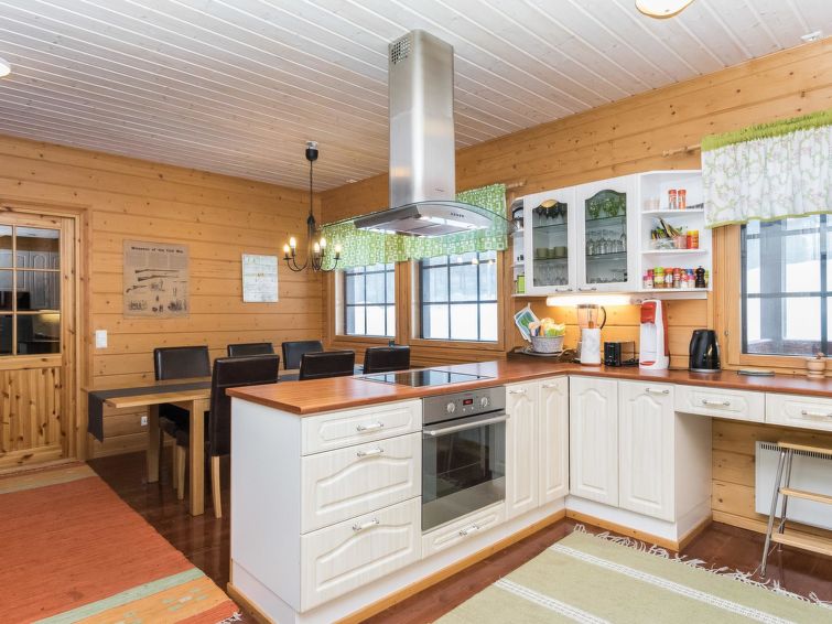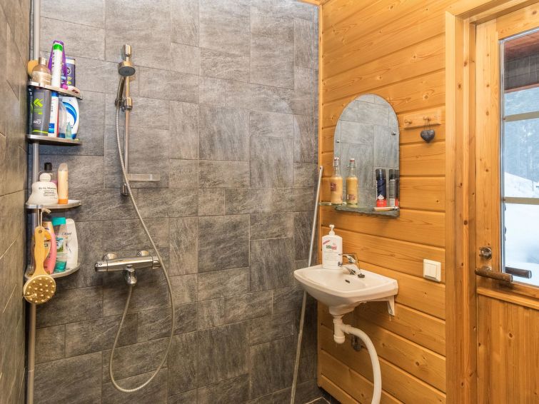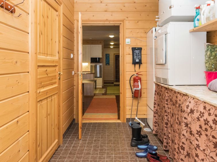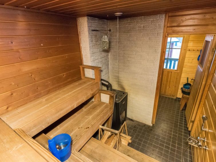 The main building does not have a sauna, but there is a separate well-equipped lakeside sauna (25 m²) with washroom, living room with fireplace, kitchenette and two alternative beds.
