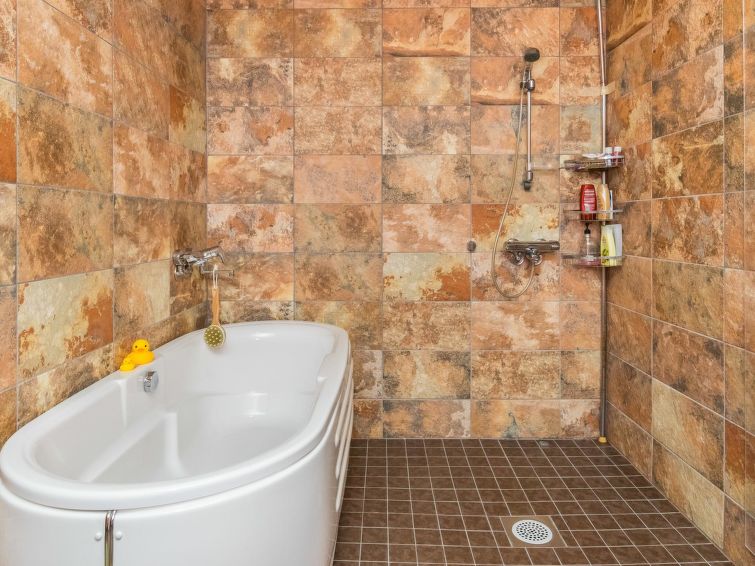 Wooden house 2009, kitchen, dining room, living room, bedroom with double bed and TV, second bedroom with 2 beds, third bedroom with 2 beds, fourth bedroom with 2 beds. Utility room, washroom with toilet, shower and bath, in addition separate toilet, covered terrace.