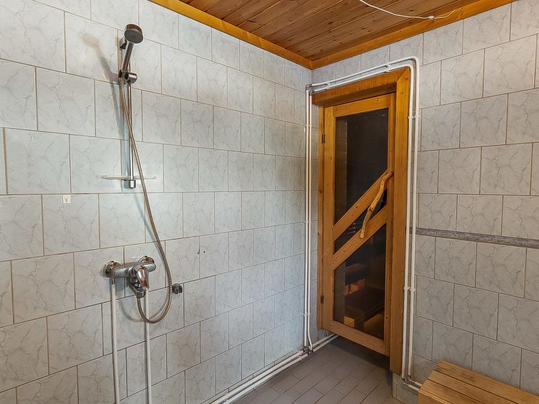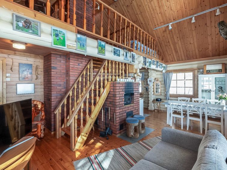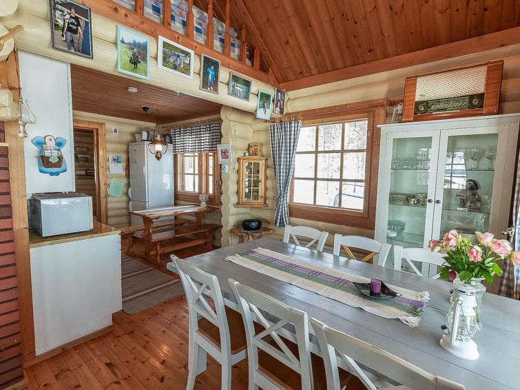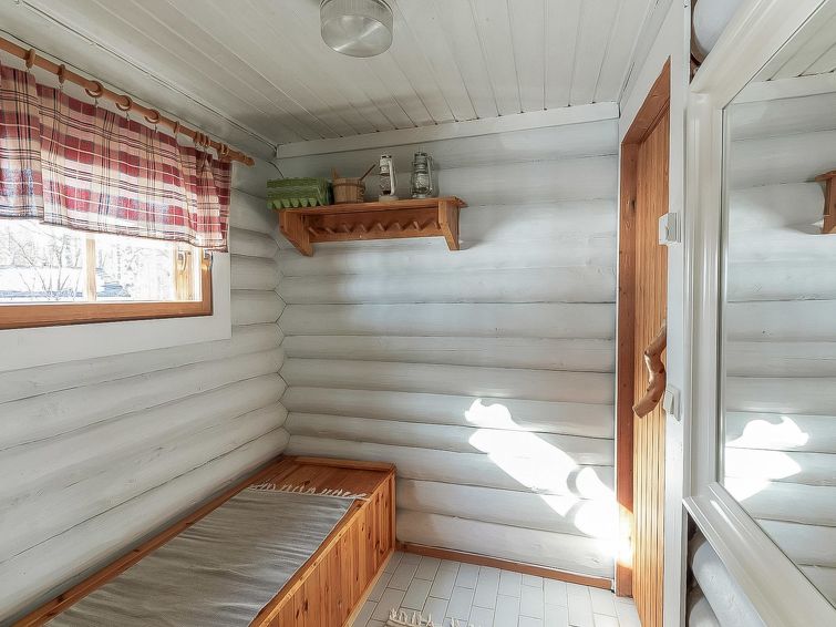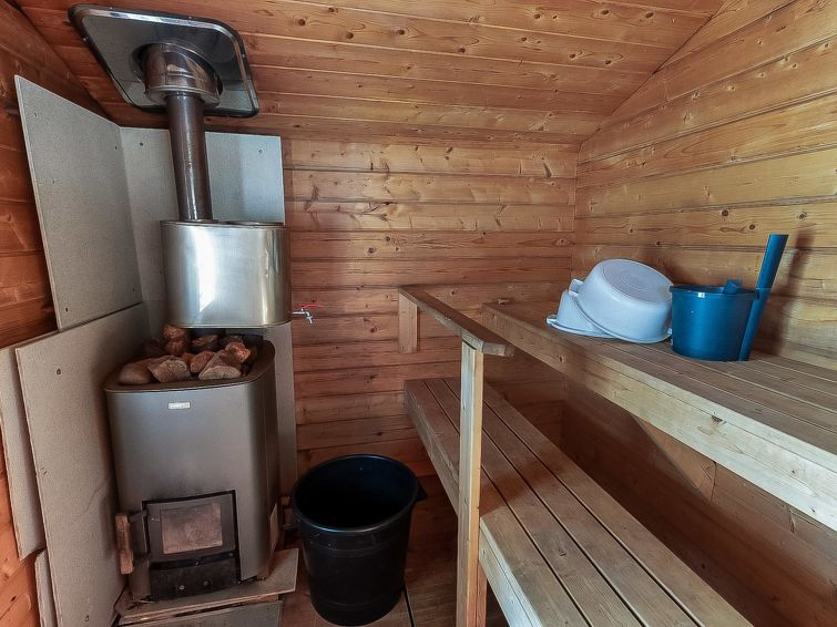 Separate lakeshore sauna 10 m, with ‘steam room’ (wood-burning stove and hot water tank on stove) and open porch. Jetty next to sauna. Lakeshore sauna has neither water pipe nor electricity. Log cottage with all conveniences, located right on lake shore. 2 fish nets and 2 “katiska” fish traps with licences, as also trident fishing gear, can be used by customers. Owner can arrange hunting services and permits, seine net fishing and trolling, also excursions to Hossa area.