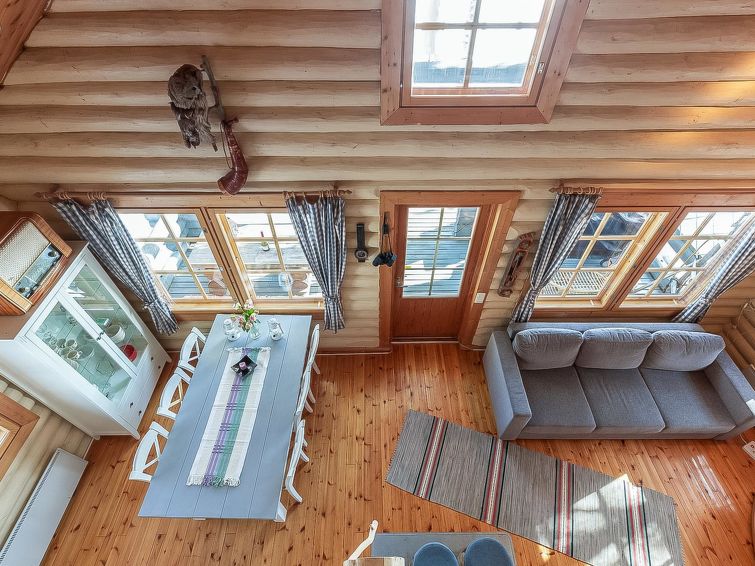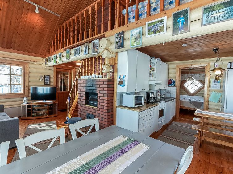 Log cottage 1998, living room/kitchen, bedroom double bed, sleeping loft double bed, sauna (wood-burning stove), washroom, separate WC, open porch, balcony. Additionally, 2 moveable extra beds which can be sited as required.