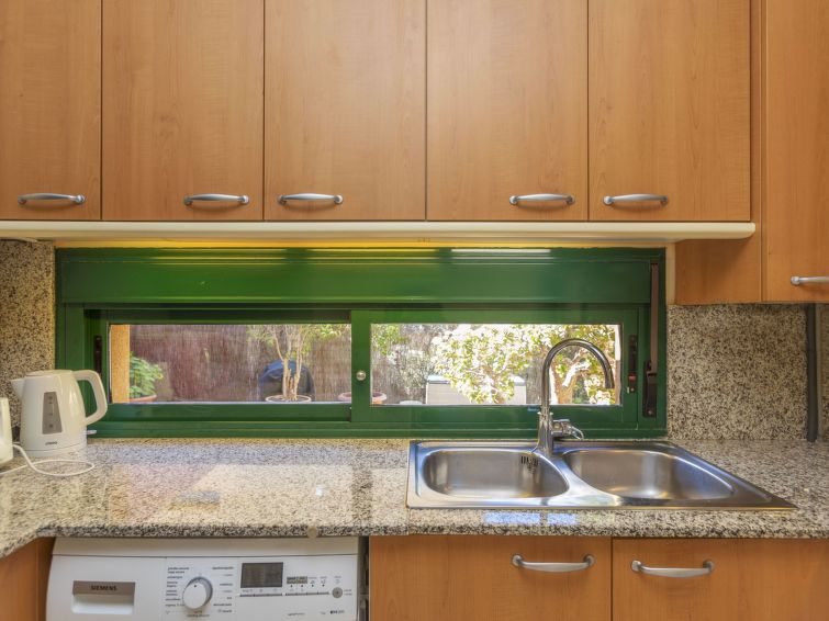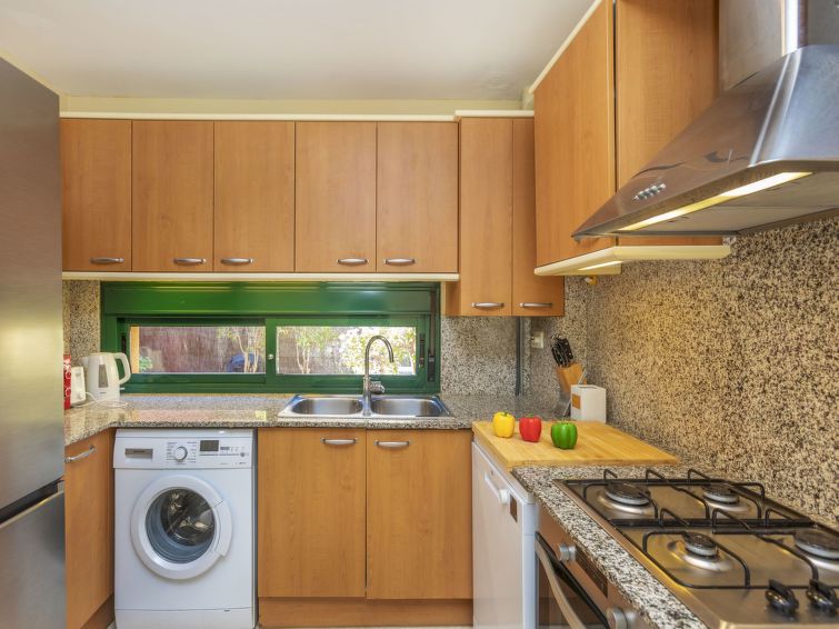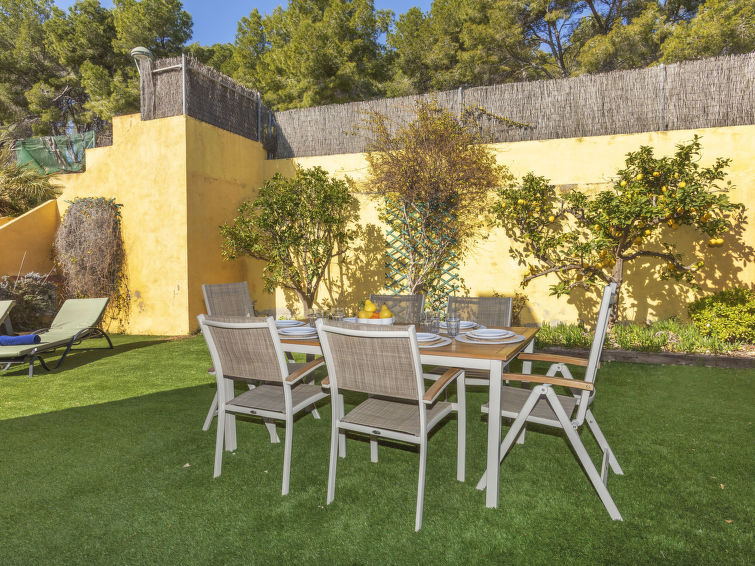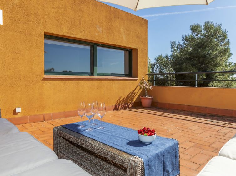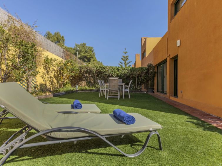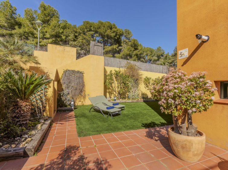 Tamarit 13 km fra Tarragona: Meget fin, komfortabel rekkehus "Vistamar", med 2 etasjer, rekkehus. 20 hus i resorten. I området Tamarit - La Mora, utenfor området, 13 km fra sentrum av Tarragona, i en roligt, solrikt, høyt posisjon boligområde, 10 m fra skogskanten, 1 km fra sjøen, 1 km fra stranden, i en blindvei. Fellesbruk: hage (inngjerdet) med plen, 1 badebasseng nyre-formet (Sesongåpent: 01.Jan. - 31.Des. bassengets åpningstider: 10:00-22:00). Utendørs dusj. Privat: vakker hage med plen og trær. I huset: trådløst LAN [WLAN]. Offentlig parkering på veien. Butikk 1.4 km, daglivarehandel 1.4 km, supermarked 2.3 km, kjøpesenter 2.3 km, restaurant 1.4 km, bar 1.4 km, bakeri 1.4 km, café 1.4 km, bussholdeplass "Passeig de l'Esquirol" 350 m, togstasjon "AVE Camp de Tarragona" 25 km, sandstrand "Tamarit" 1.4 km. Sporthavn 6 km, marina 6 km, golfbane(19 hull) 8 km, surfeskole 4 km, tennis 1 km, rideskole 11 km. Attraksjoner i nærheten: Port Aventura 25 km, Aquopolis 25 km, Parque de aventura Jungle Trek 200 m, Pista de básquet y fútbol 800 m. Turstier El Medol 3 km. Vennligst merk: bil anbefales. Velegnet for barnefamilier, babyutstyr på forespørsel (ekstra). Eieren godtar ikke noen ungdomsgrupper. Av- og pålastning av bagasje er mulig ved feriebol. Stille og rolig område. Stillhet og god oppførsel.
