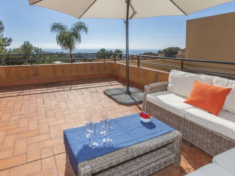 "Vistamar", 4 rom rekkehus 130 m2 på 2 etasjer. Passer for 4 voksne + 2 barn. Lys, komfortabelt og vakkert møbler: stue/spisestue med, satelit-TV, digital TV, flatskjerms TV, gassoppvarming og air-conditioning. Utgang til hagen, til terrassen. 1 dobblet rom med, 1 dobbeltseng. (4 kokeplater, stekeovn, oppvaskmaskin, mikrobølgeovn, elektrisk kaffemaskin, Internet(Nespresso)). Utgang til hagen. Dusj/bidé/WC. Gassoppvarming. øverste etasje: 1 rom med 2 senger. 1 dobblet rom med, 1 dobbeltseng. Bad/bidé/WC. Liten terrasse, stor hage, plen. Terrassemøbler, grill, liggestoler. Hærlig god utsikt av havet og landskapet. Fasiliteter: vaskemaskin, strykejern, høy barnestol hårføner. Internett (trådløs LAN [WLAN], gratis). Vennligst merk: velegnet for familier. Røykfritt hus. HUTT010842