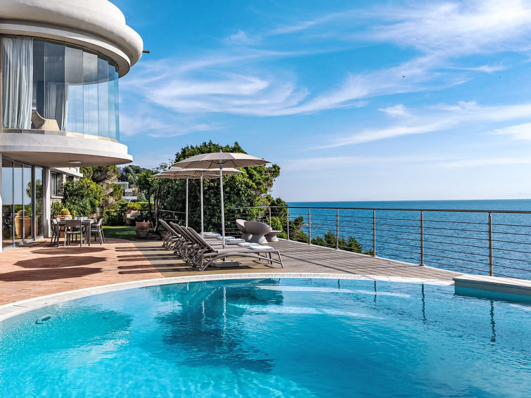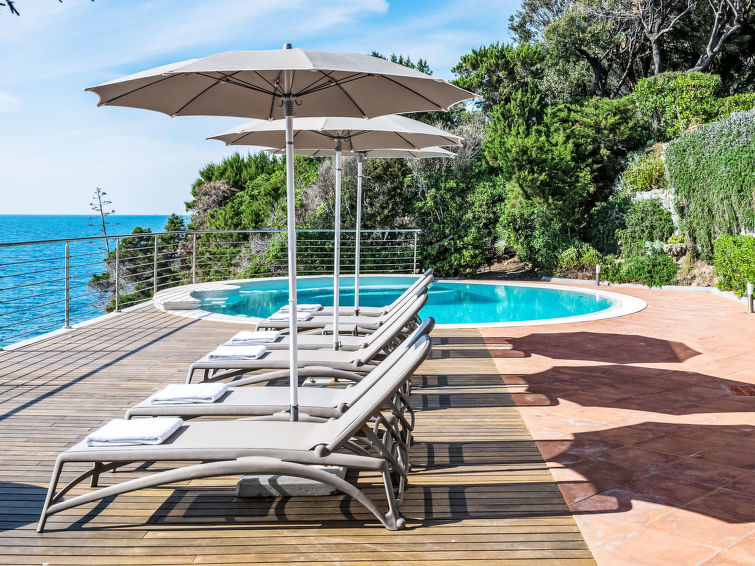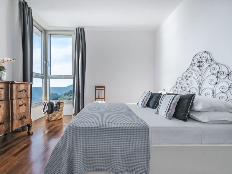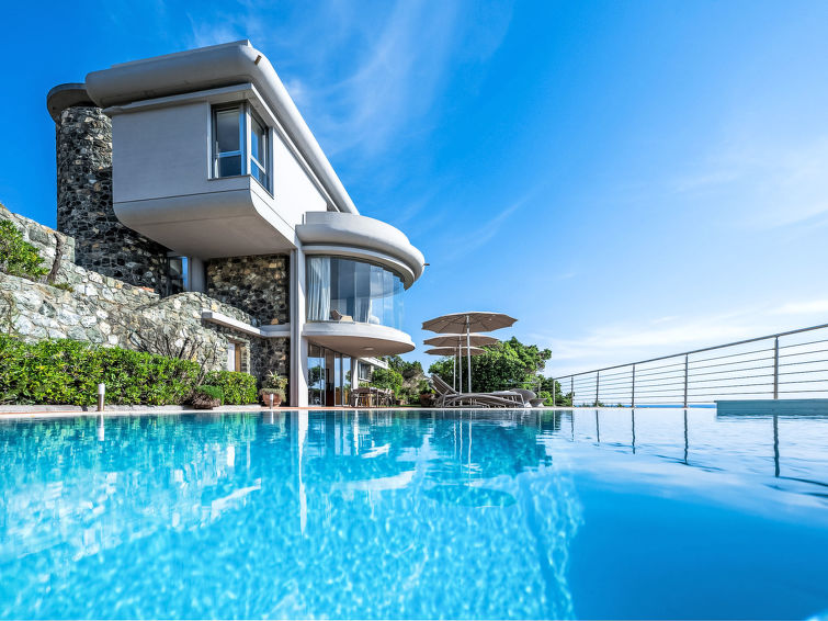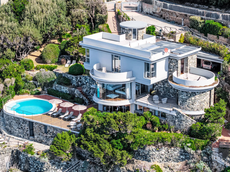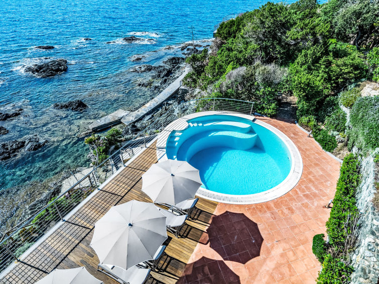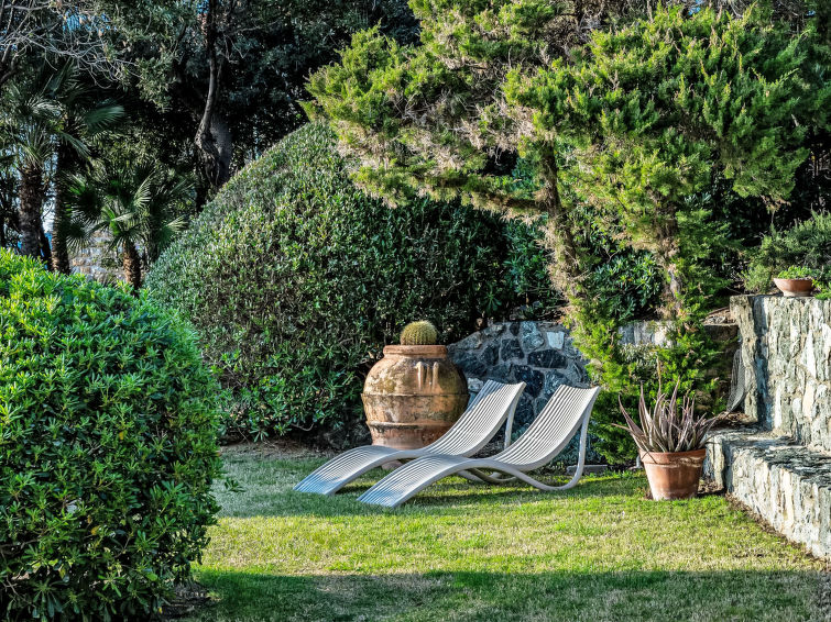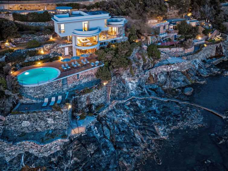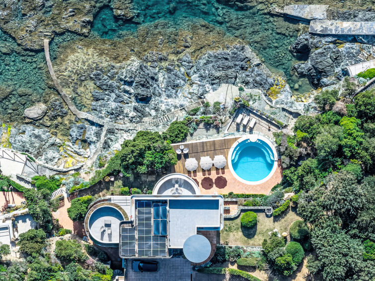 "Vistamare", 8 rom hus 450 m2 på 3 etasjer. Renovert i 2022, vakkert og smakfullt møbler: 1 dobblet rom. 1 rom med 2 senger (80 cm). Spisestue med, spisebord. Utgang til terrassen. Kjøkken (stekeovn, oppvaskmaskin, 5 induksjonskomfyr, brødrister, vannkoker, mikrobølgeovn, frys, elektrisk kaffemaskin). Utgang til hagen. Dusj/WC. øverste etasje: (vindeltrapp) stue med, TV, stereoanlegg og DVD. Utgang til terrassen. øverste etasje: 2 dobbelt rom. 1 dobblet rom. Utgang til balkongen. 1 rom med 2 senger. Utgang til balkongen. 2 dusjer/WC. El-oppvarming, airconditioning. Parkett. Balkong, 3 terrasser delvis dekt. Terrassemøbler, lager. Hærlig utsikt av havet. Fasiliteter: vaskemaskin, safe, strykejern, høy barnestol barneseng for barn opp til 3 år, hårføner. Internett (trådløs LAN [WLAN], gratis). Max kjæledyr/små hunder tillatt 2 kjæledyr/små hunder tillatt.