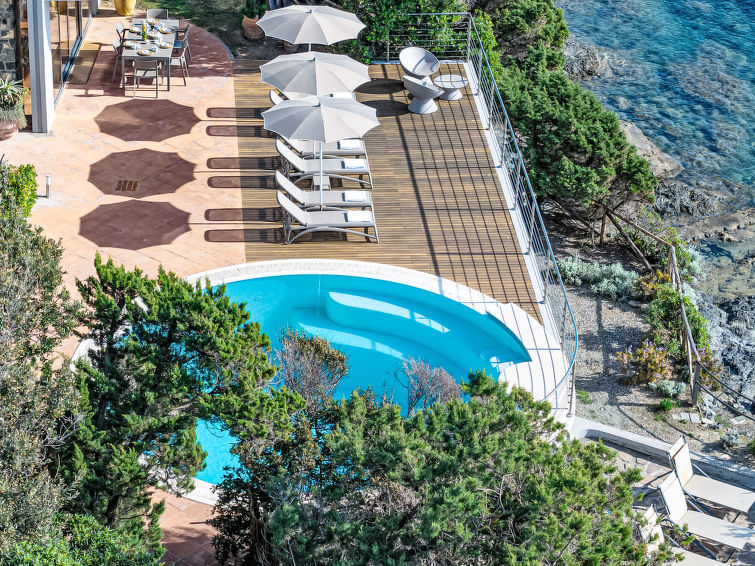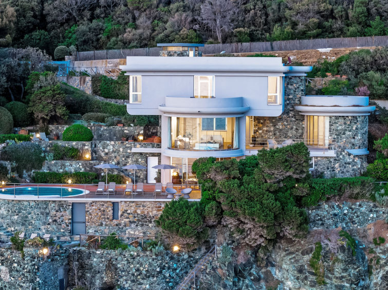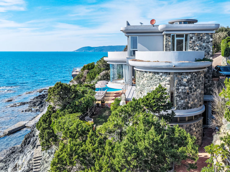 Moderne villa "Vistamare", med 3 etasjer, renovert i 2022, omgitt av trær. 1.5 km fra sentrum av Castiglioncello, 13 km fra sentrum av Cecina, 20 km fra sentrum av Livorno, ved en høyde, 30 m fra sjøen, direkte tilgang til stranden. Privat: tomt 900 m2 (inngjerdet), hage i flere nivåer med planter og trær, svømmebasseng (7 m i diameter, Sesongåpent: 03.Apr. - 30.Okt.) med saltvann. Dusj/WC ved bassenget, utendørs dusj, grill, bading. Trapper til hbrukt. Overdekket, parkering (for 4 biler). Butikk 1.5 km, supermarked 1.5 km, bakeri 1.5 km, togstasjon "Castiglioncello" 2 km, sandstrand "Baia del Quercietano" 1.5 km, strand ved klipper 30 m. Marina 4 km, tennis 2 km, minigolf 2 km. Attraksjoner i nærheten: Pisa 40 km, Lucca 65 km, Firenze 110 km. Eieren godtar ikke noen ungdomsgrupper.