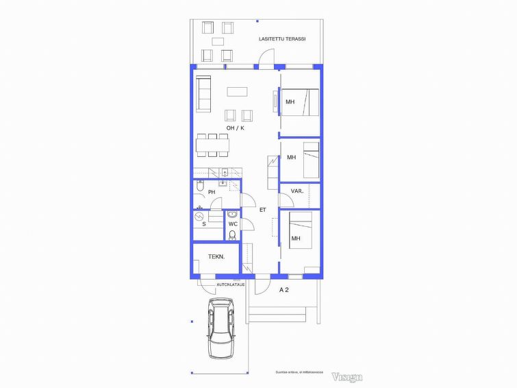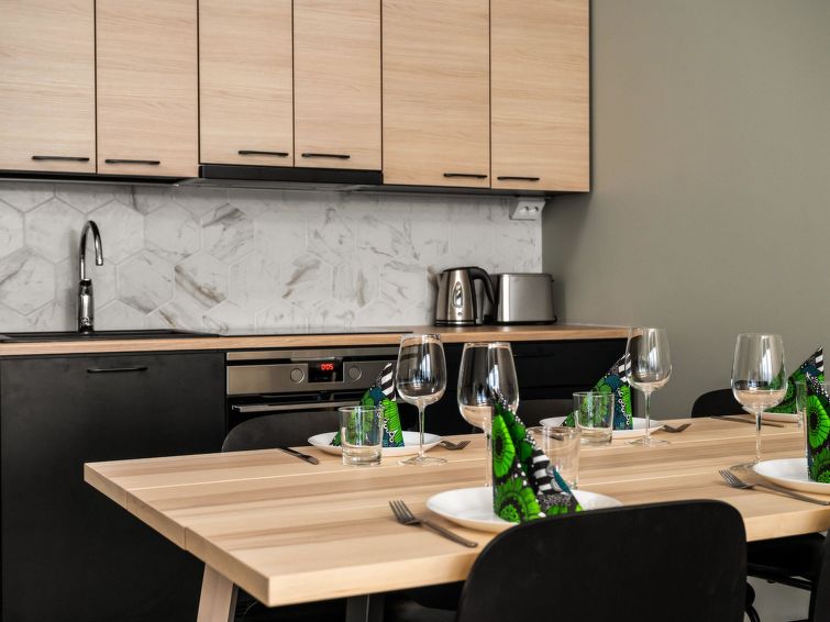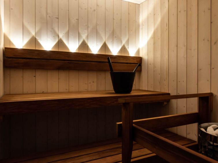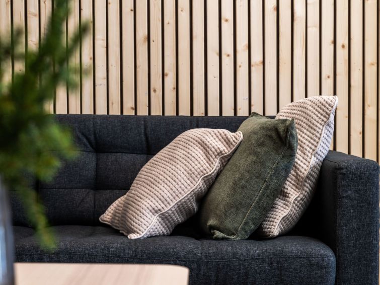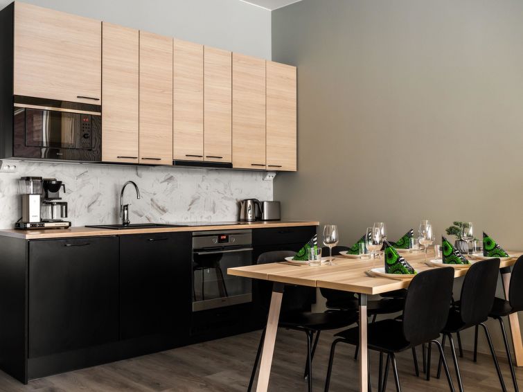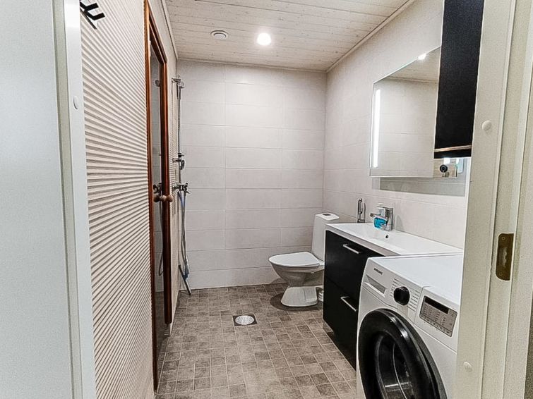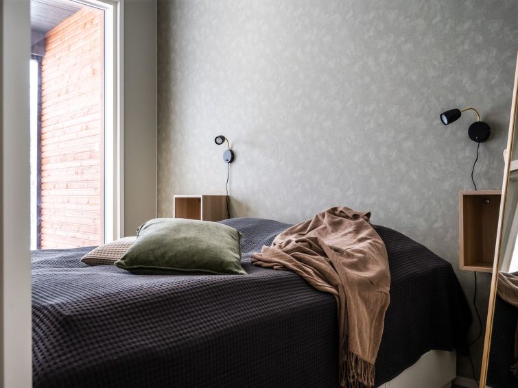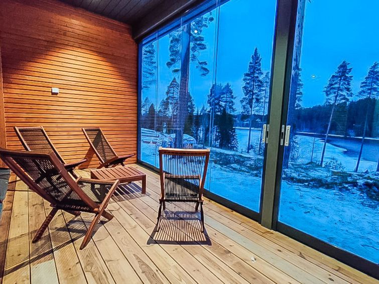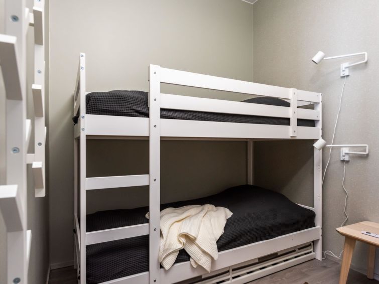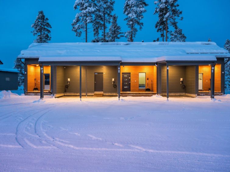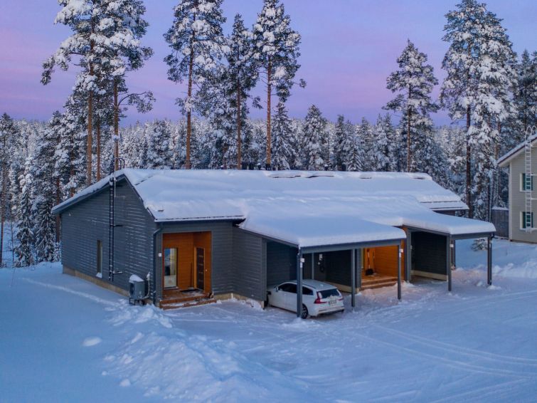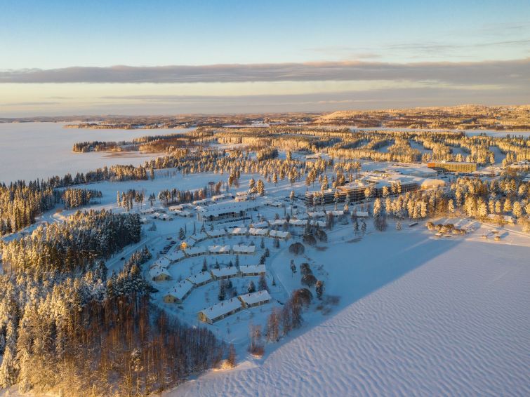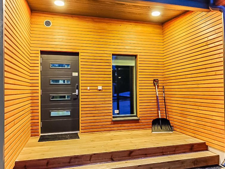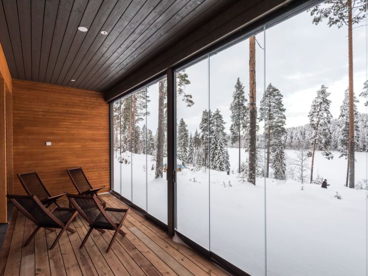 Additional equipment for families with small children: high chair for a baby, travel bed and potty. Do you want quality, activity and easy living of your holiday? This new destination has everything you need for a relaxing holiday. When you step in the apartment, the view to the living room, and from the high windows, is like from a postcard. The beautiful view of the pond Jäätiönlampi calms even the busiest holidaymakers mind, and a relaxing holiday is ready to begin. The apartment's elegant interior, functional space arrangements and comprehensive equipment meet the requirements of every holidaymaker. The living room kitchen has light, space and style. There is also a pleasant acoustic environment, that has achieved by using battens on the walls and the ceiling. There is really an opportunity to calm down and relax here. The bedrooms have enough space for up to 7 people. Pleasant steam of the sauna is provided by the pillar-style electric sauna stove (Harvia Cilindro brand) and the cooling on the spacious glazed terrace completes the sauna experience. Of course, a good holiday includes outdoor life and activities. Facilities are just around the corner. Just put skis on your feet, and you can start skiing directly from the yard. Well-maintained and illuminated ski trails are waiting. Everything else is within a short walk, including ski slopes, snowmobiles safaris, adventure park, hiking trails, fishing, swimming areas, spa and shopping center and much more.