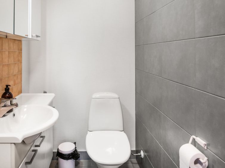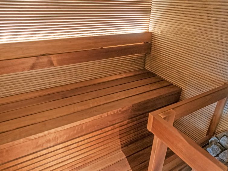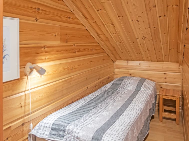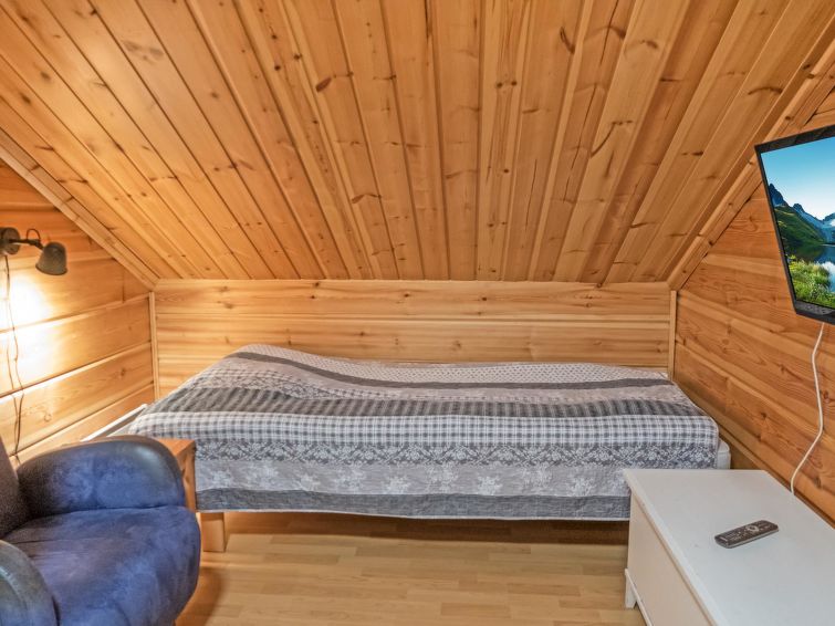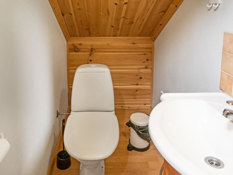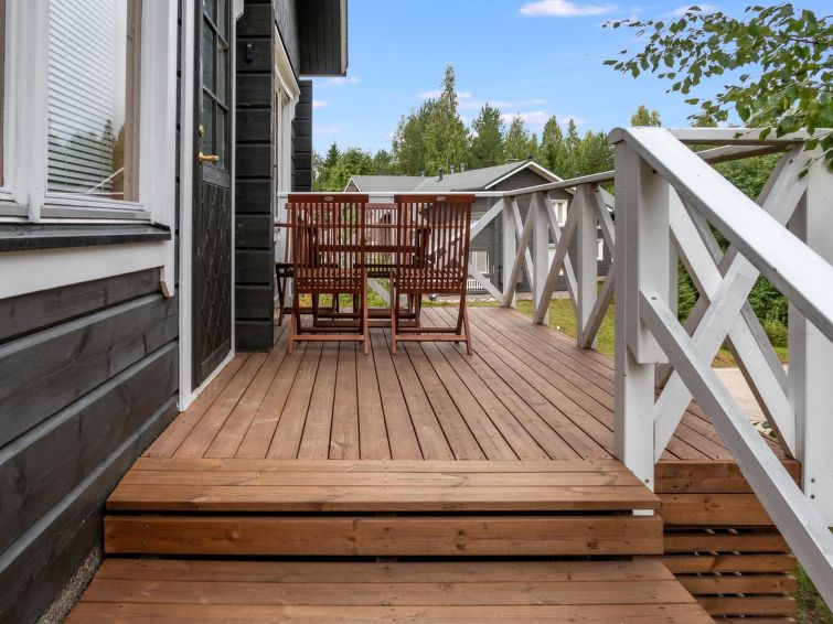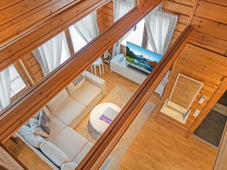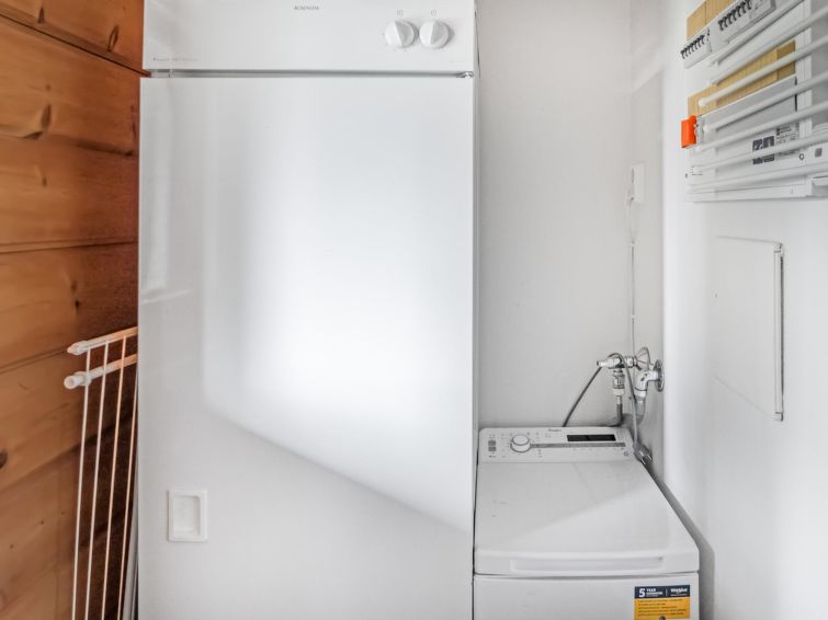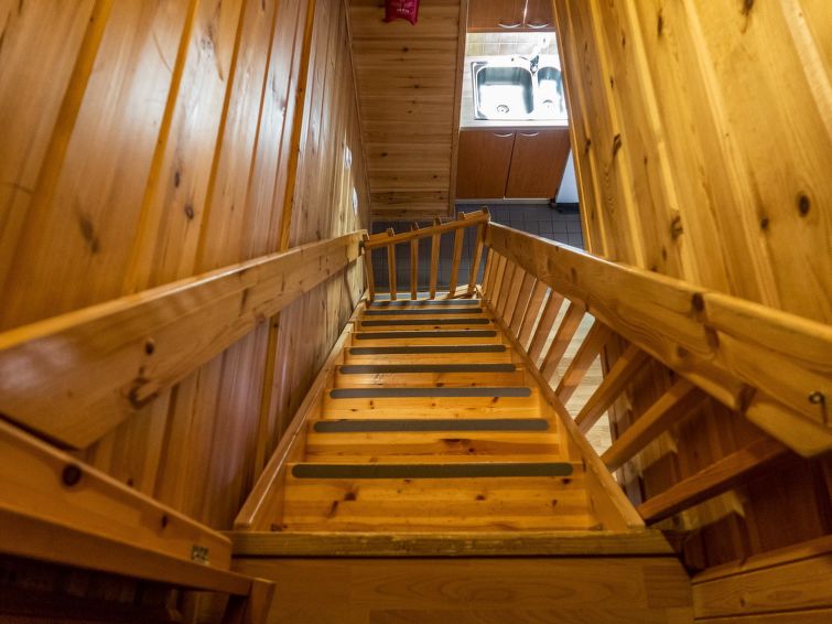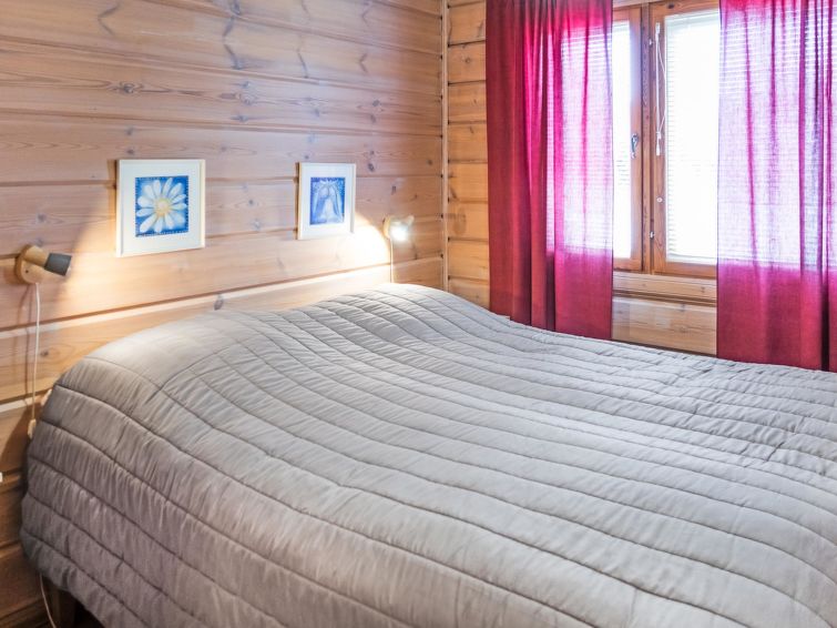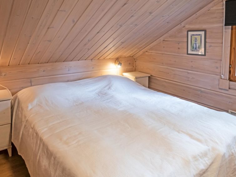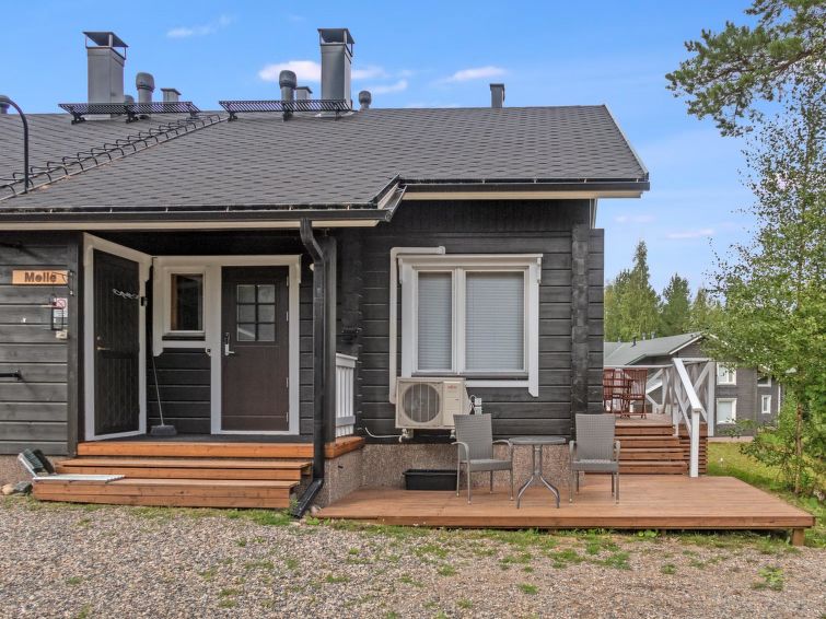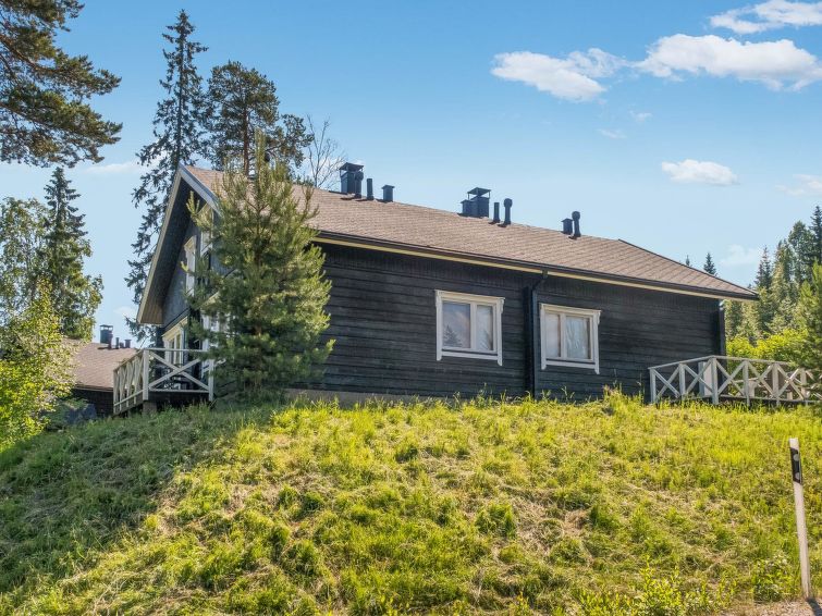 Semi-detached log apartment in the slope center of Vuokatti, built 2003. Area 74 m², inc. loft 14 m², living room / kitchen with sofa bed for 1-2, fireplace, bedroom with double bed. Sauna (electric heater), shower and separate toilet. Upstairs bedroom with twin beds, sleeping loft with twin beds and toilet.