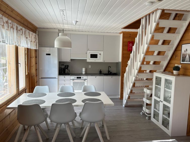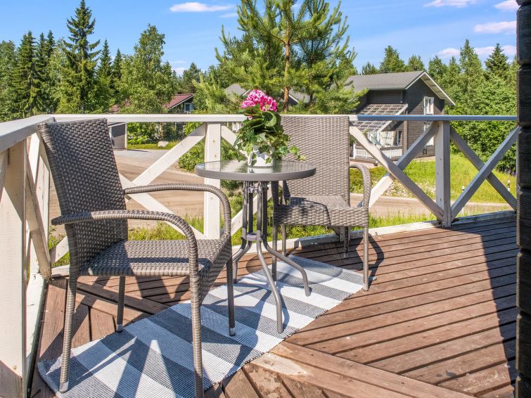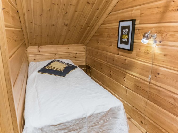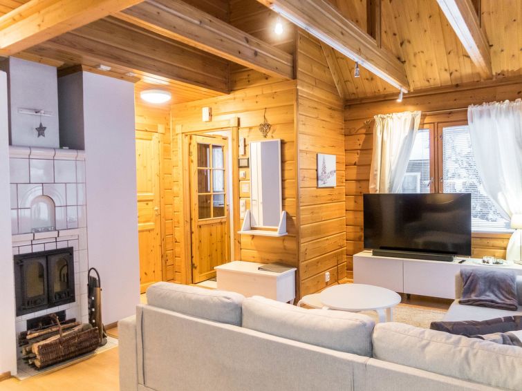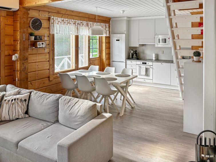 Log semi-detached apartment in the slope center of Vuokatti, built 2003. Area 74 m², of which loft 14 m², living room / kitchen with sofa bed for 1-2, fireplace, bedroom with 2 beds. Sauna (electric heater), shower and separate toilet. Upstairs bedroom with twin beds, sheltered sleeping loft with twin beds and toilet.