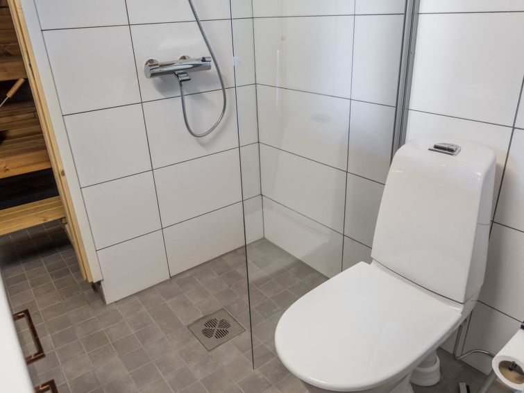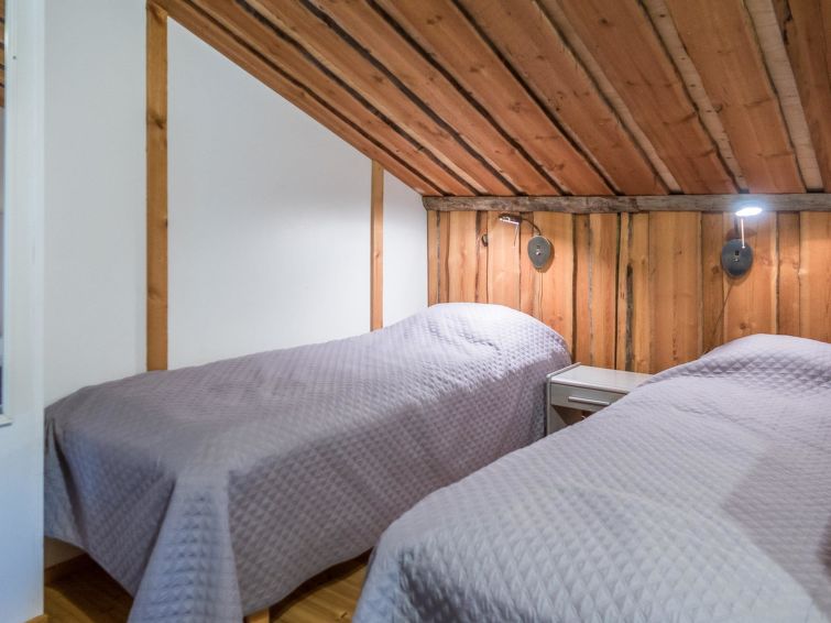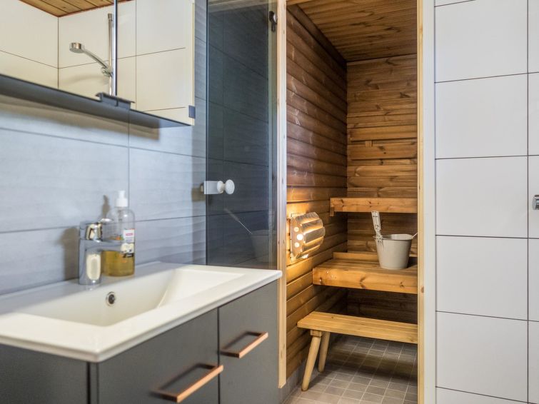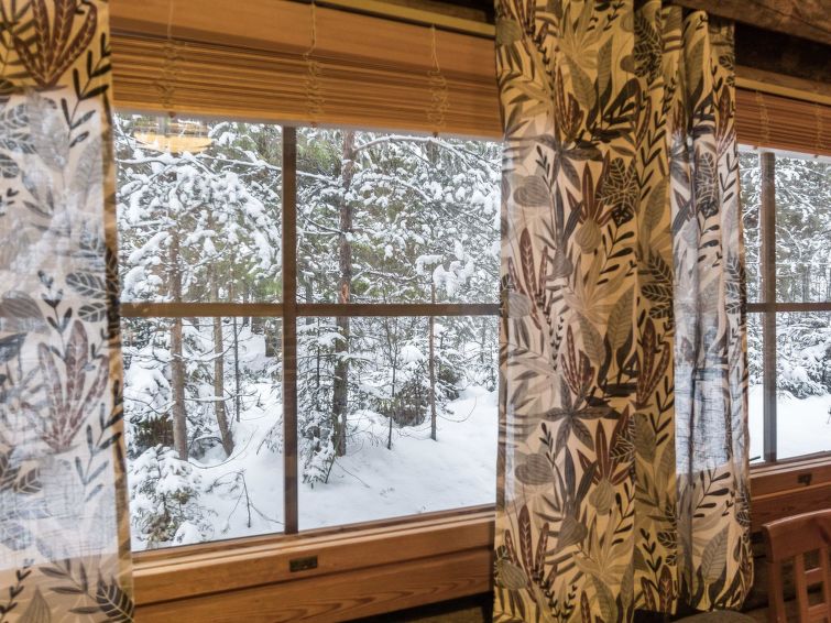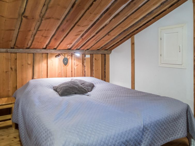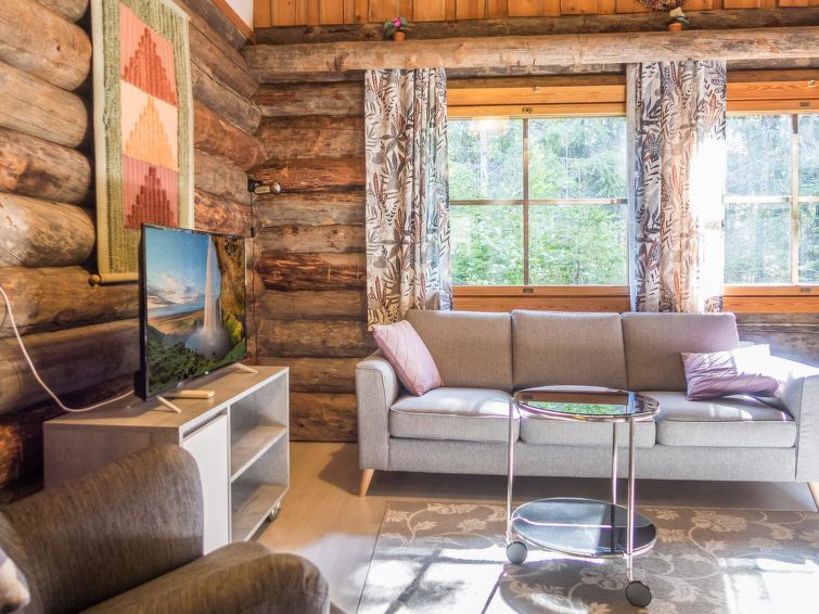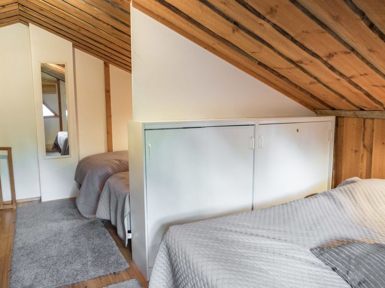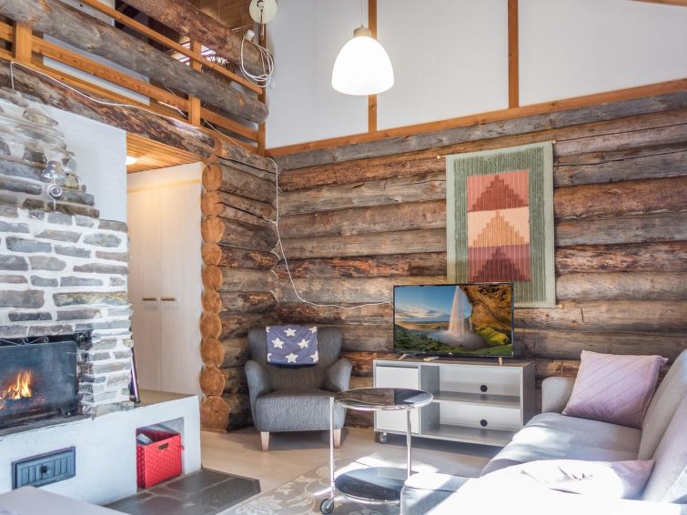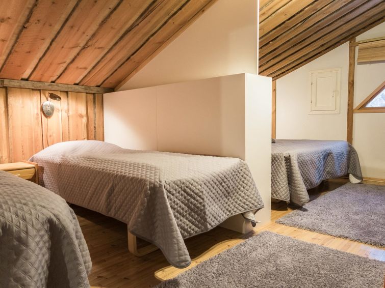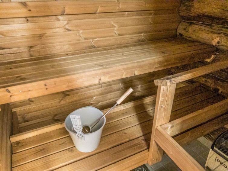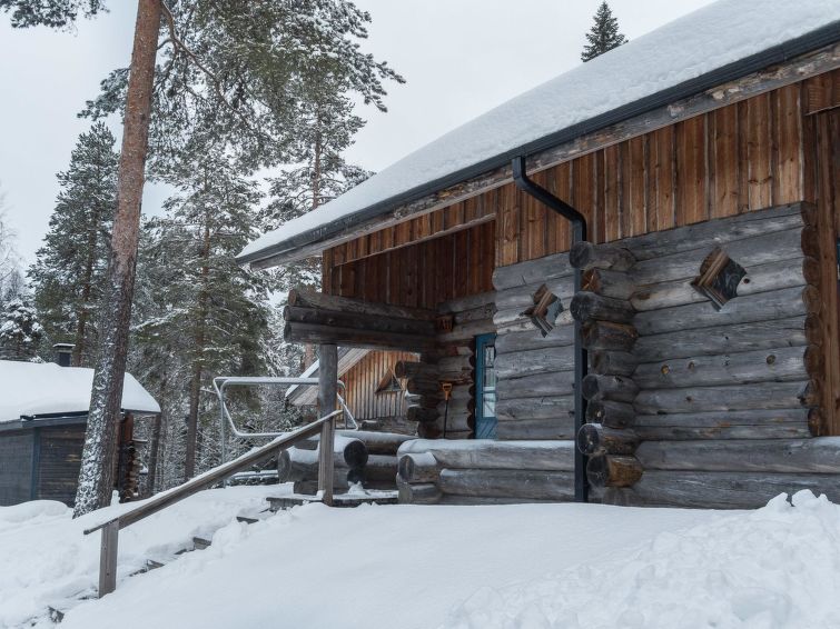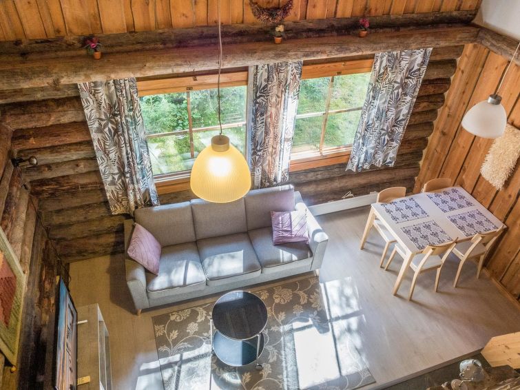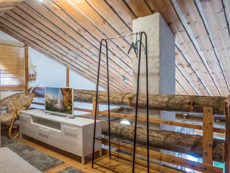 This log row house apartment is located in Vuokatti ski centre. Floor area 48 m², loft 15 m². Combined living room & kitchen. Loft (steep stairs) with 2 beds and double bed (divided with wall) and one movable extra bed. Sauna (electric heating), washroom and toilet. Kajaani 33 km, Sotkamo 7 km, Vuokatti ski slope 200 m, cross country track 50 m. Beach 1,5 km.
