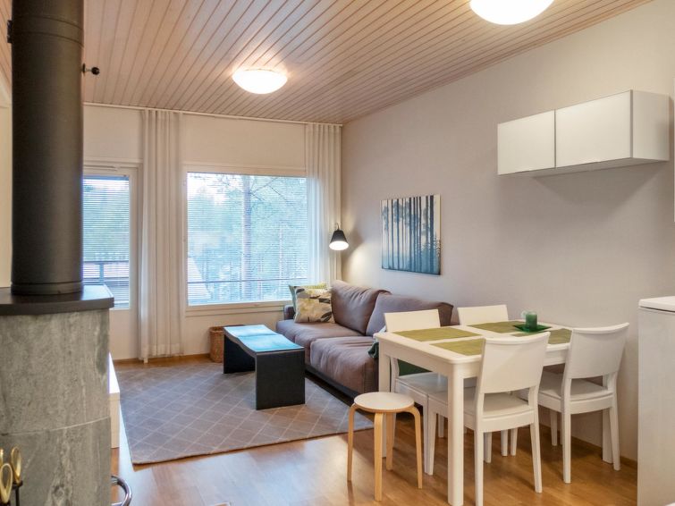 Huoneistossa rentoudut ja viihdyt Vuokatin rauhallisen ja kauniin luonnon keskellä tai vietät aktiivilomaa harrastusten parissa. Ulkoilu- ja urheilumaastot aukeavat ulko-ovelta tai ovat lyhyen kävelymatkan päässä. Ikkunoista voit ihailla mm. laskettelurinteitä. Kaupat, ravintolat ja kylpylä löytyvät läheltä (1-3 km säteellä). Päivän päätteeksi voit esim. saunoa omassa saunassa ja rentoutua takkatulen ääressä.