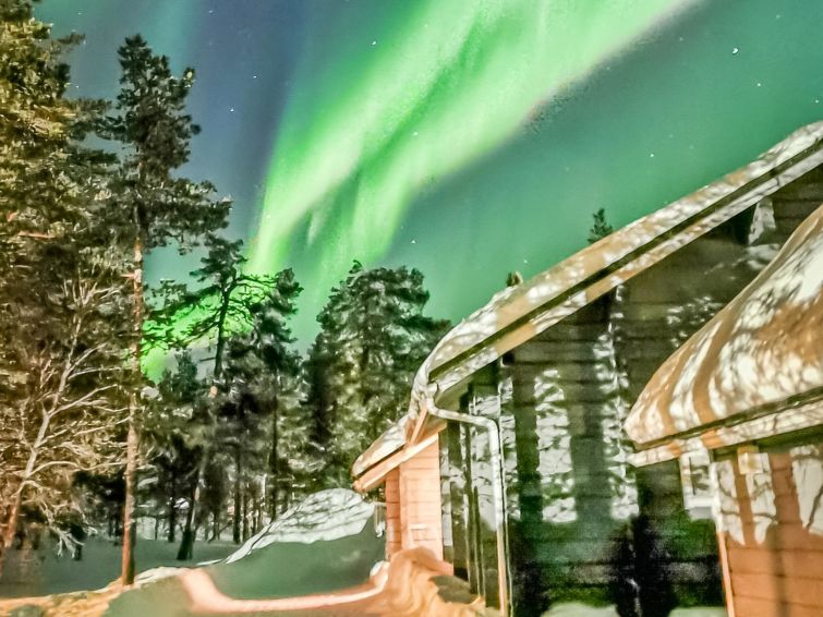 A log-built row apartment in the Etelärinne I area of Kaunispää, 1.2 km north of the center of Saariselkä.