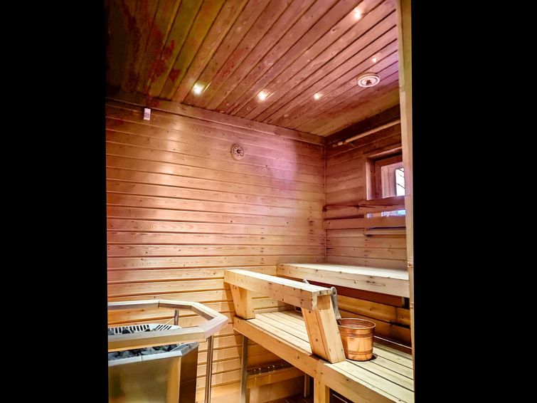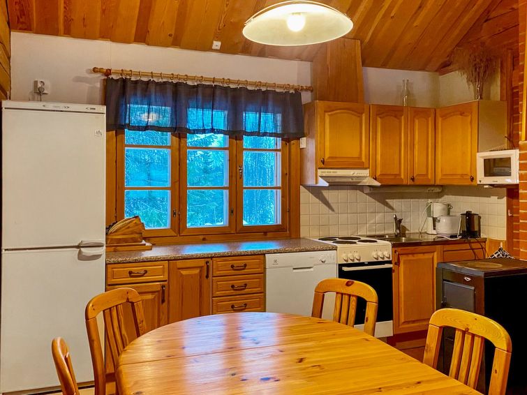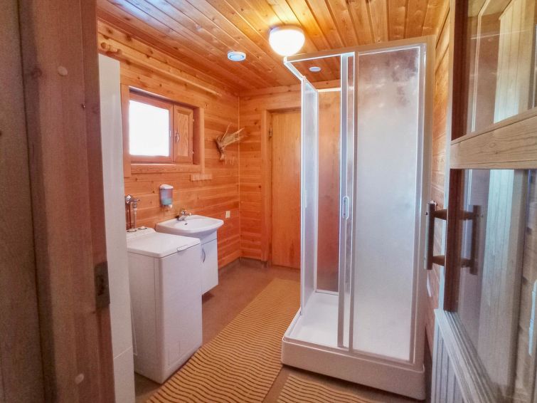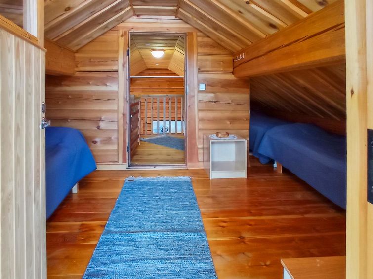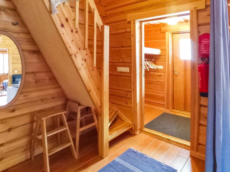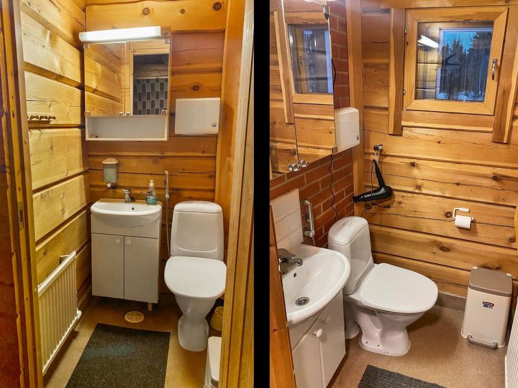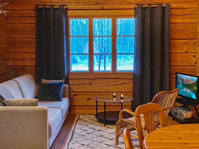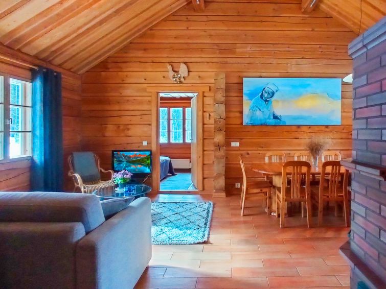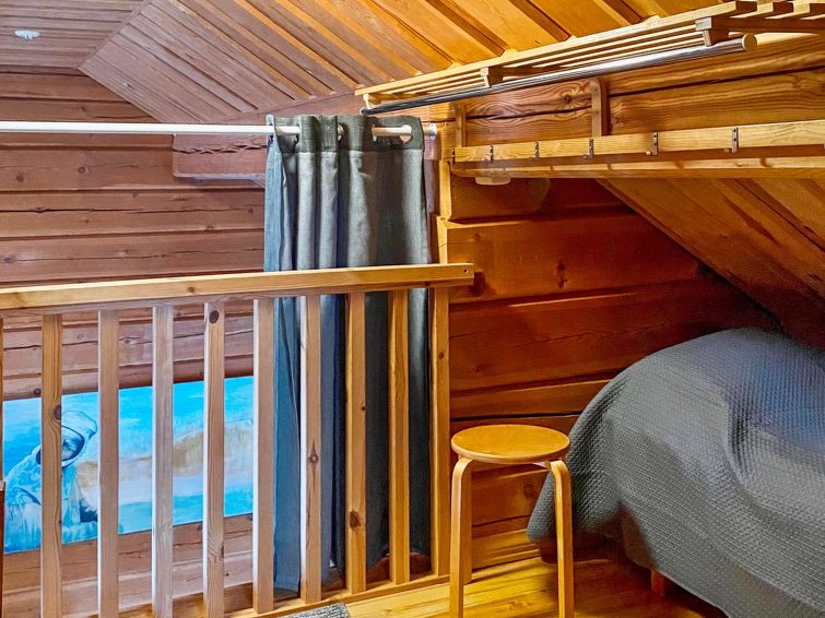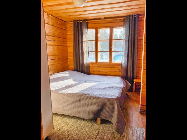 Separate log cottage located 40 km north of Kolari in Äkäslompolo village. Downstairs with livingroom/kitchen, 2 bedrooms with one bed ( 120 cm width) and upper bed (width 80 cm), 1 bedroom with 2 separate beds ( width 80 cm each), sauna, washing room, 2x toilet. Loft with 1 bed (width 120 cm) and 2 separate beds (width 120 cm) ,car shelter, ski waxing space. Log cottage located in the Äkäslompolo village central area. Ski Center Ylläs-Ski 4 km, ski bus 300 m, Ylläs area skiing tracks 300 m. No pets allowed. Children's travel bed and feeding chair. Apartment located within a 3G network. Prices include final cleaning, bed linen available to rent.